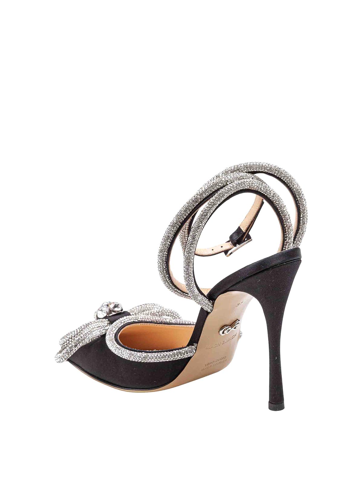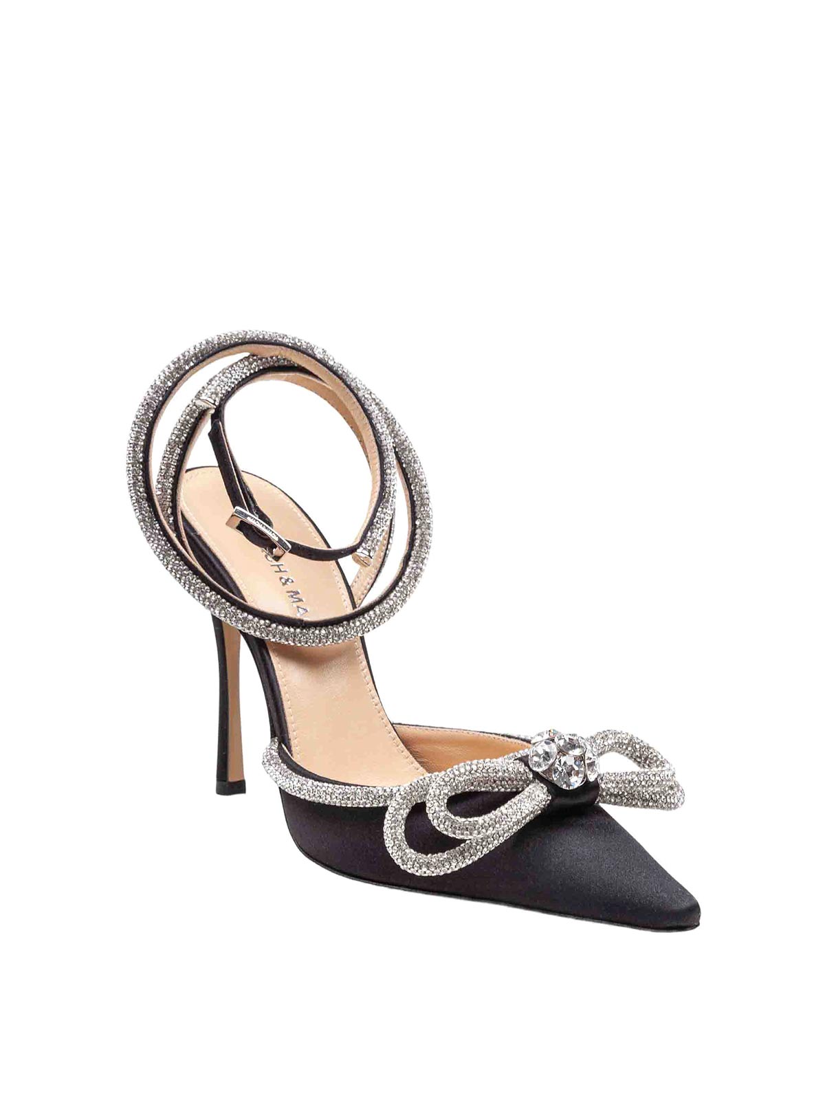 - Double satin decollete with rhinestone bow