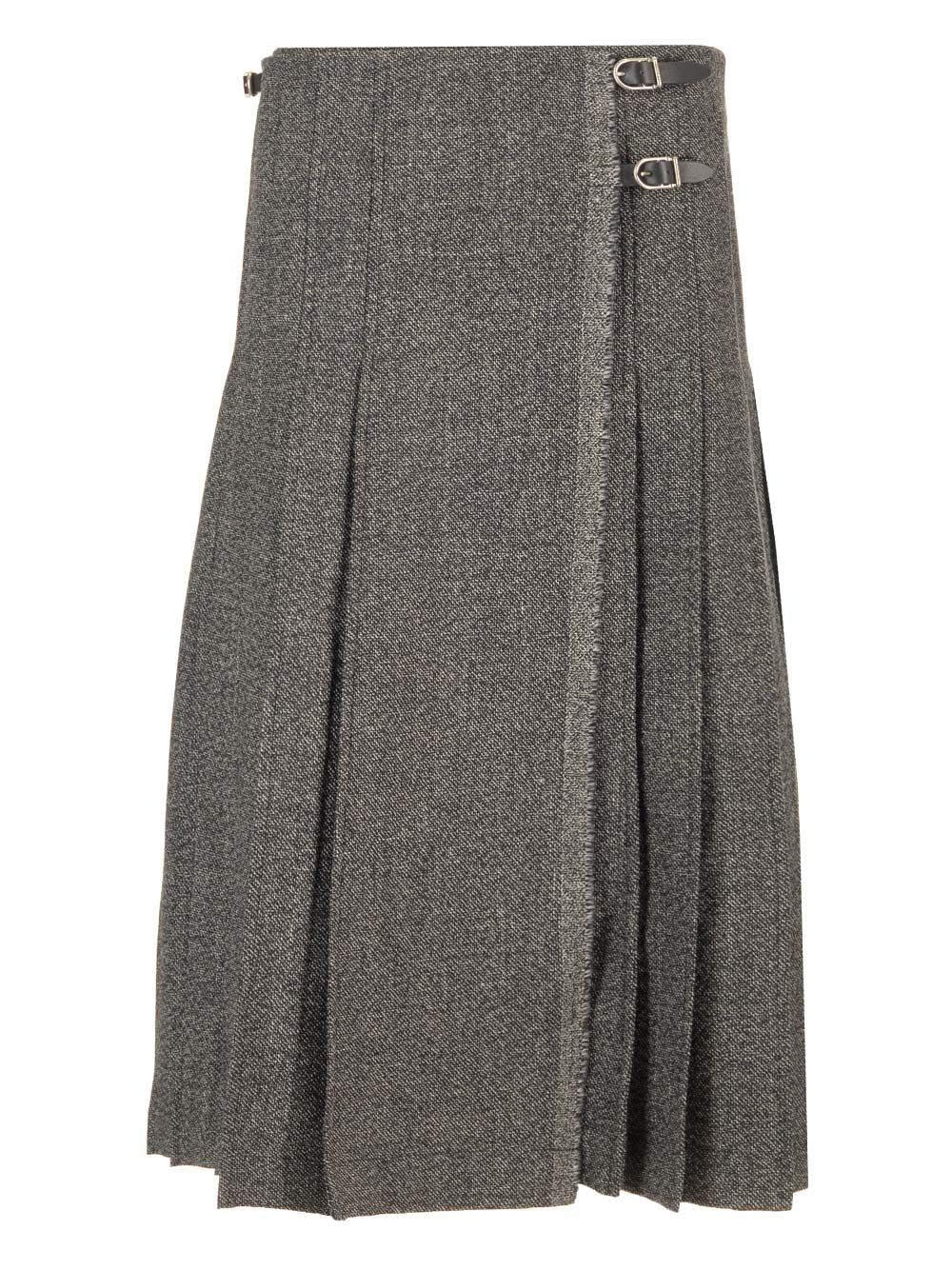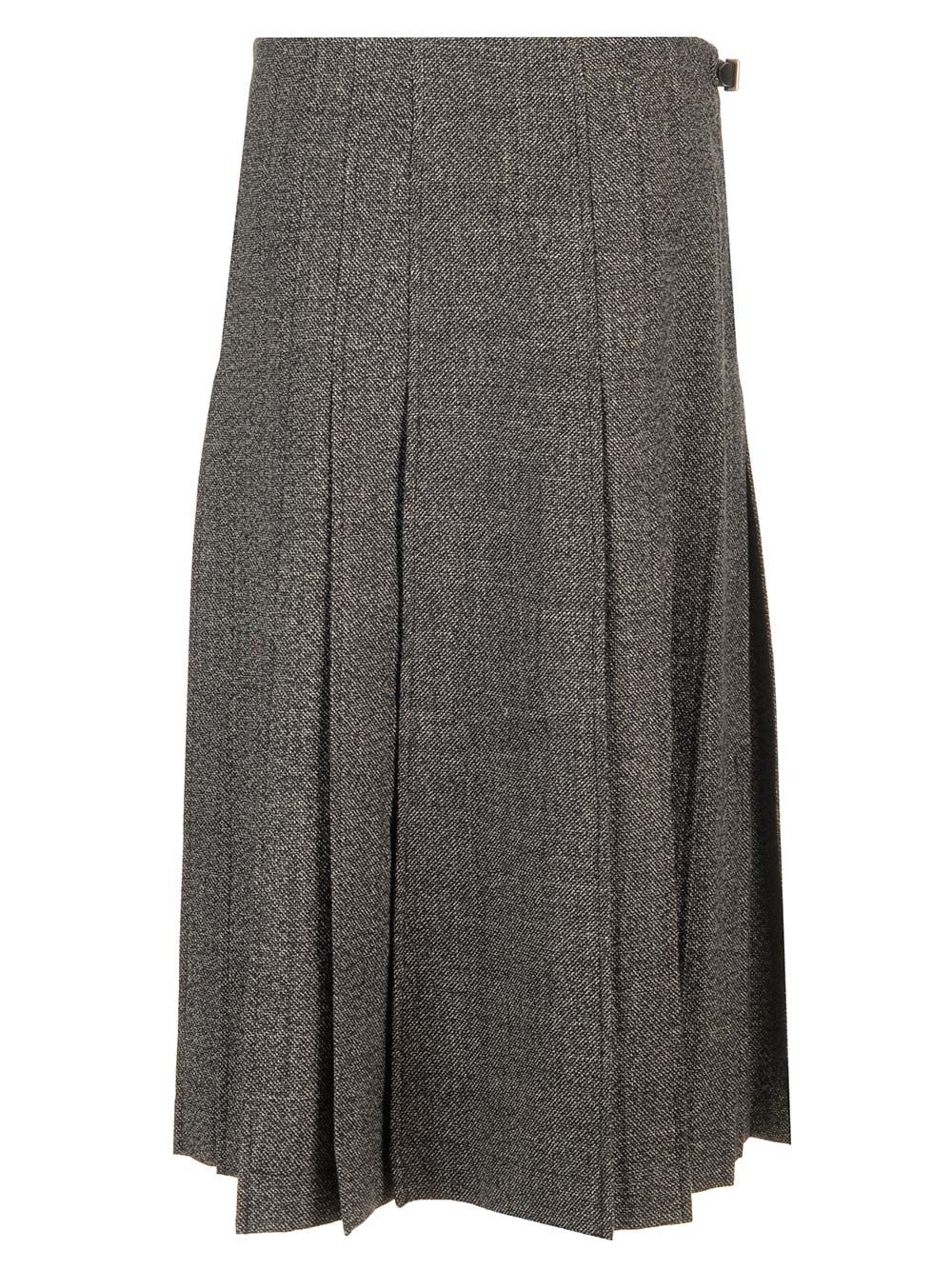 PLEATED MIDI KILT SKIRT MELANGE BLACK FW24SK07034CARB002