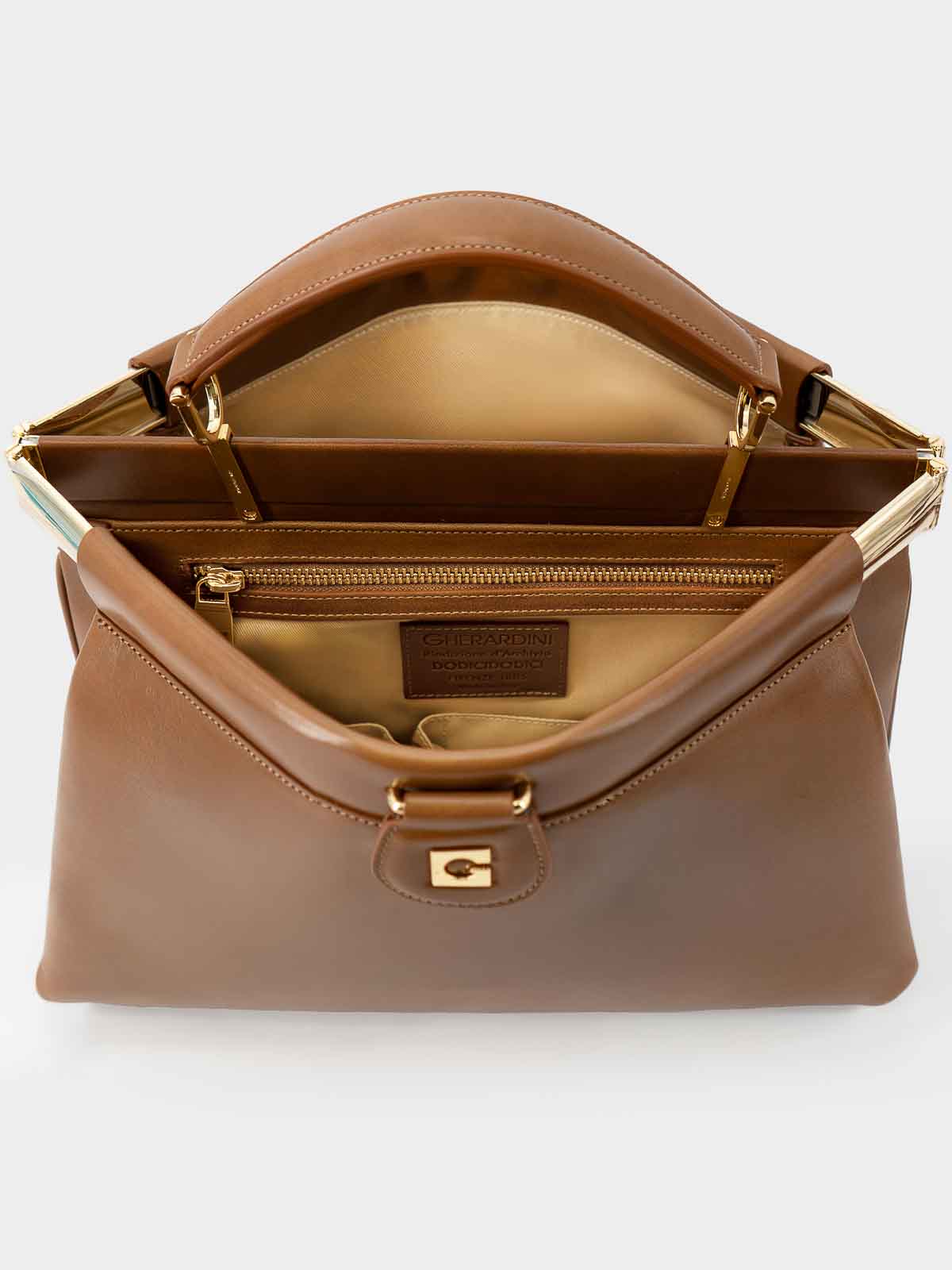 GHERARDINI(ゲラルディーニ)は、1885年にフィレンツェでガリバルド ゲラルディーニ(Garibaldo Gherardini)によって創業されたイタリアのレザーアクセサリーブランドです。最初はレザーケースなど小物中心の工房としてスタートしました。 設立当初より革細工への情熱と品質へのこだわりを堅持しており、1950年代以降にはバッグやレザーアイテムへ展開を拡大。1970年代には軽量で柔らかな素材を開発し、耐久性と携帯性を兼ね備えたデザインによってブランドのアイコンとなりました。 ロゴモノグラムを配した柔らかな生地のバッグやレザーのトリム使い、実用性と美のバランスのとれたフォルム、そして熟練職人によるハンドクラフトの技が特徴です。