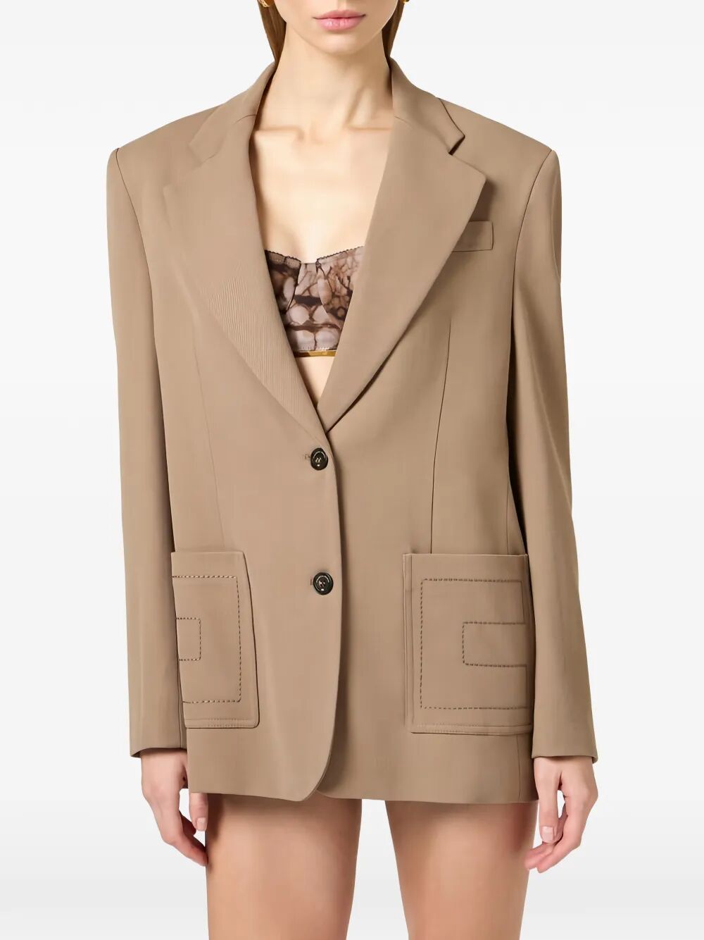 SINGLE-BREASTED GABARDINE BLAZER WITH EMBROIDERED POCKETS GI21961E2229