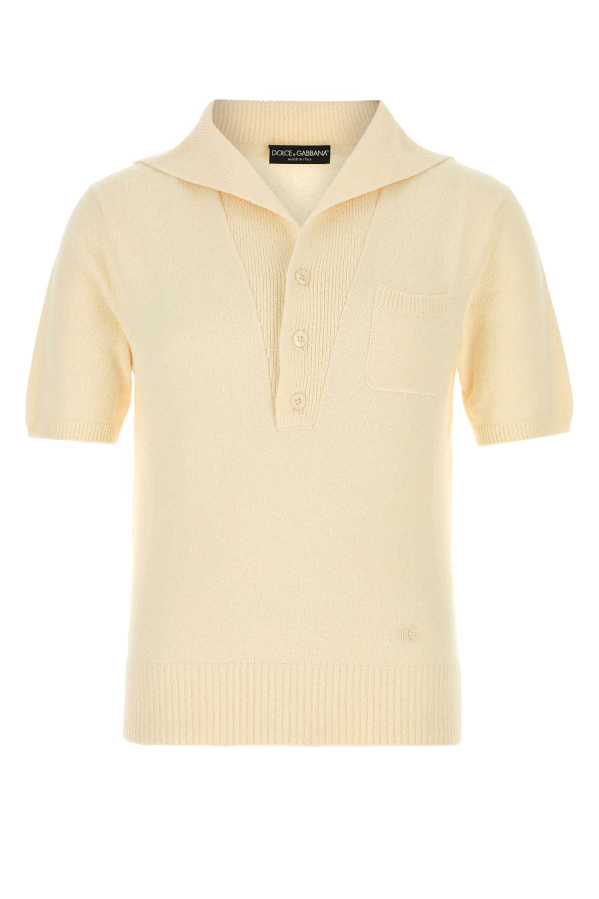 - Cream cotton blend polo shirt