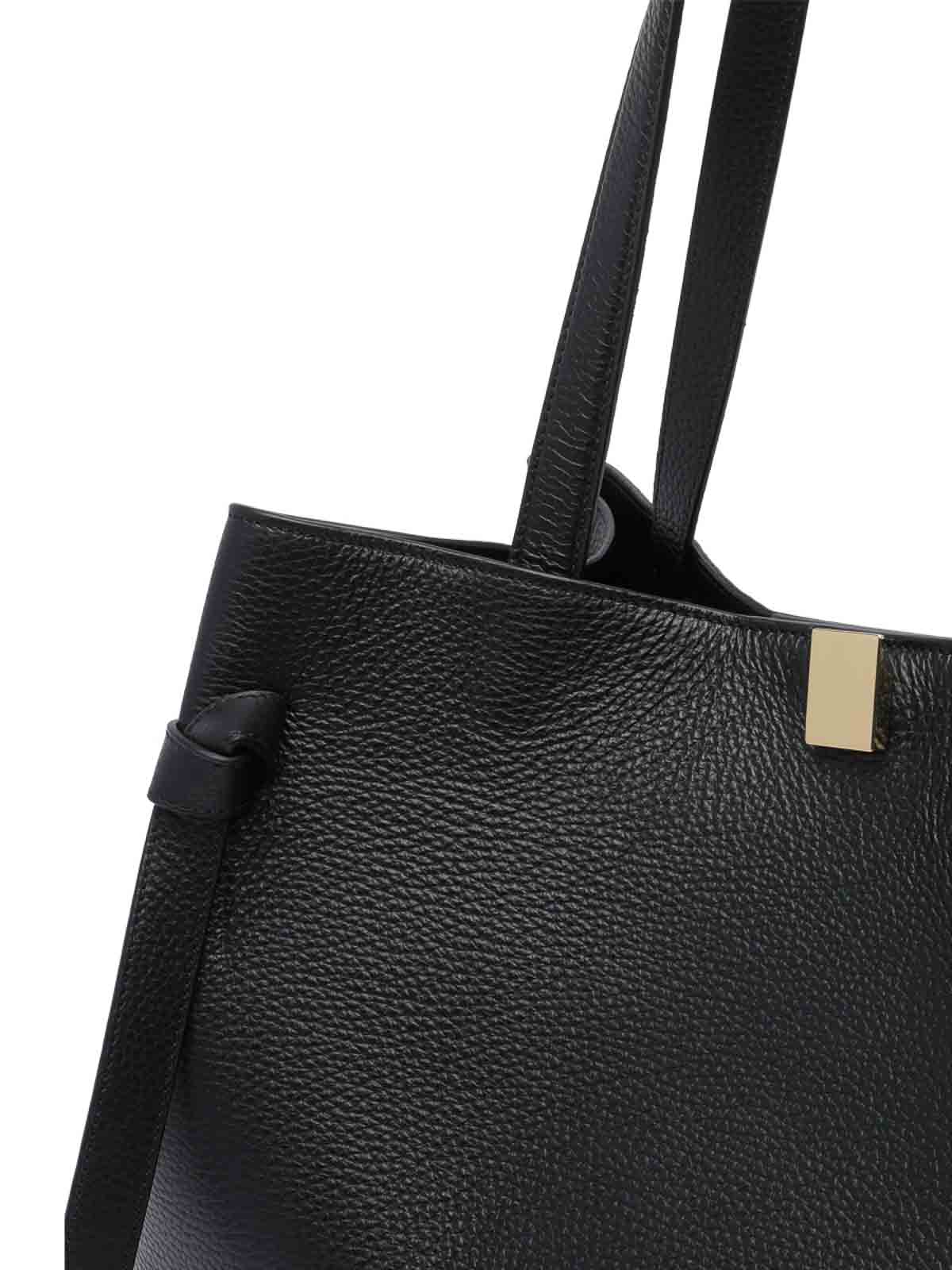 Black Gyoza Tote Bag GYOZATOTEPEBBLEGRAINLEATHERL034