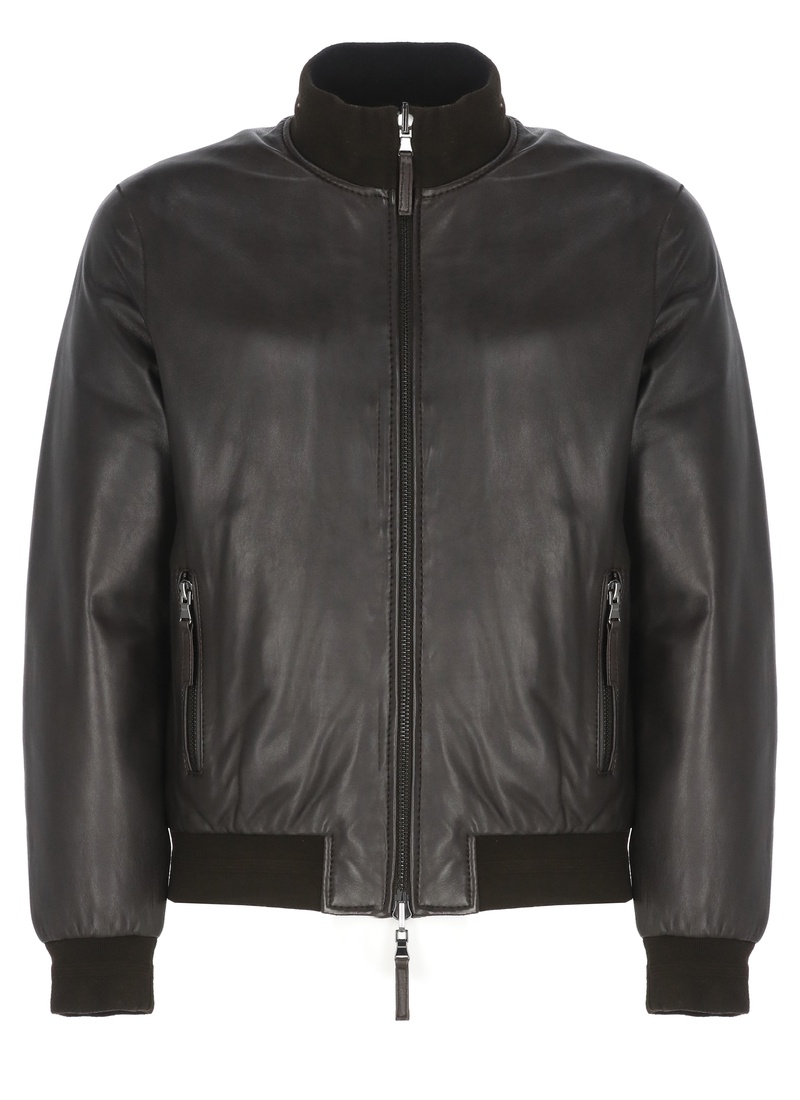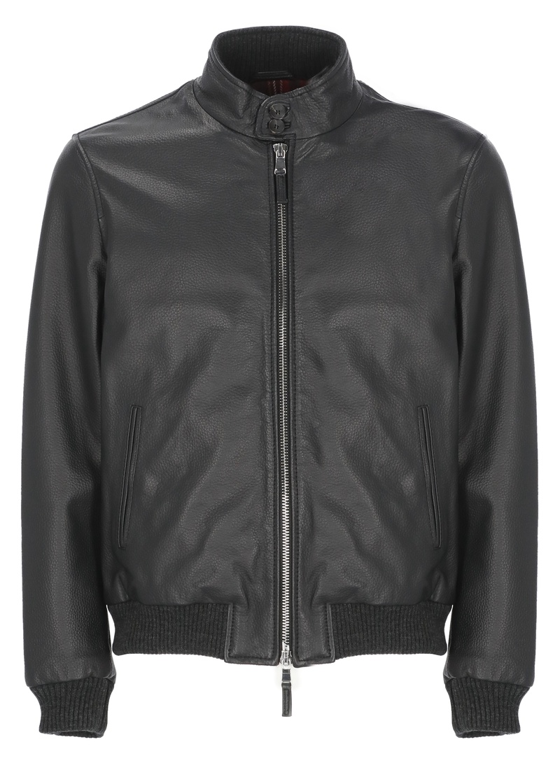 Black Leather Bomber Zip Closure HJK857LH0044020