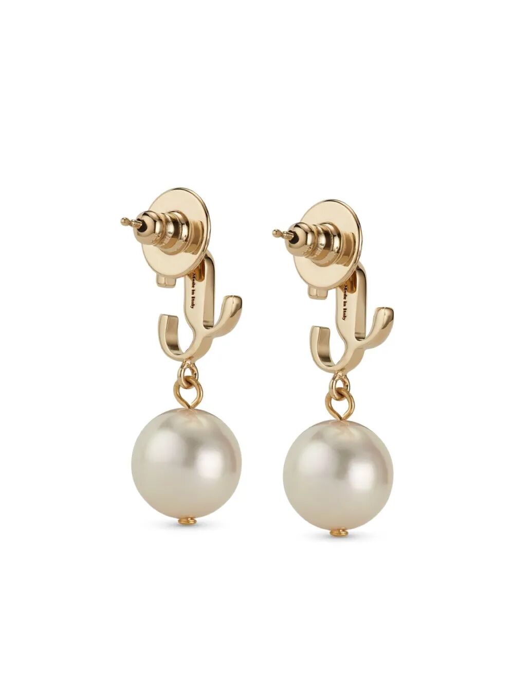 - GOLD-FINISH METAL JC PEARL STUD EARRINGS