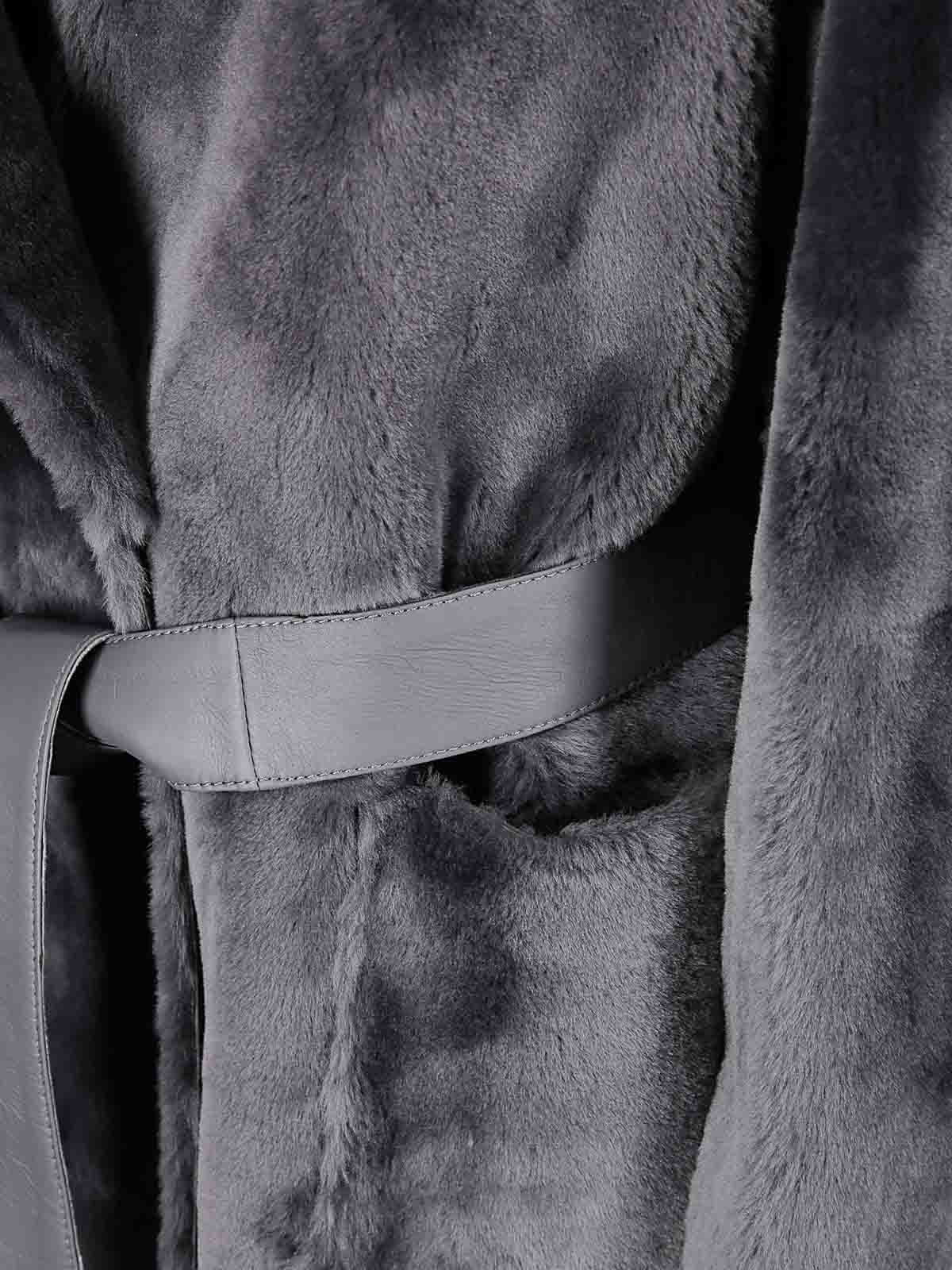 Reversible Shearling Robe Coat K14666SLATEGREY