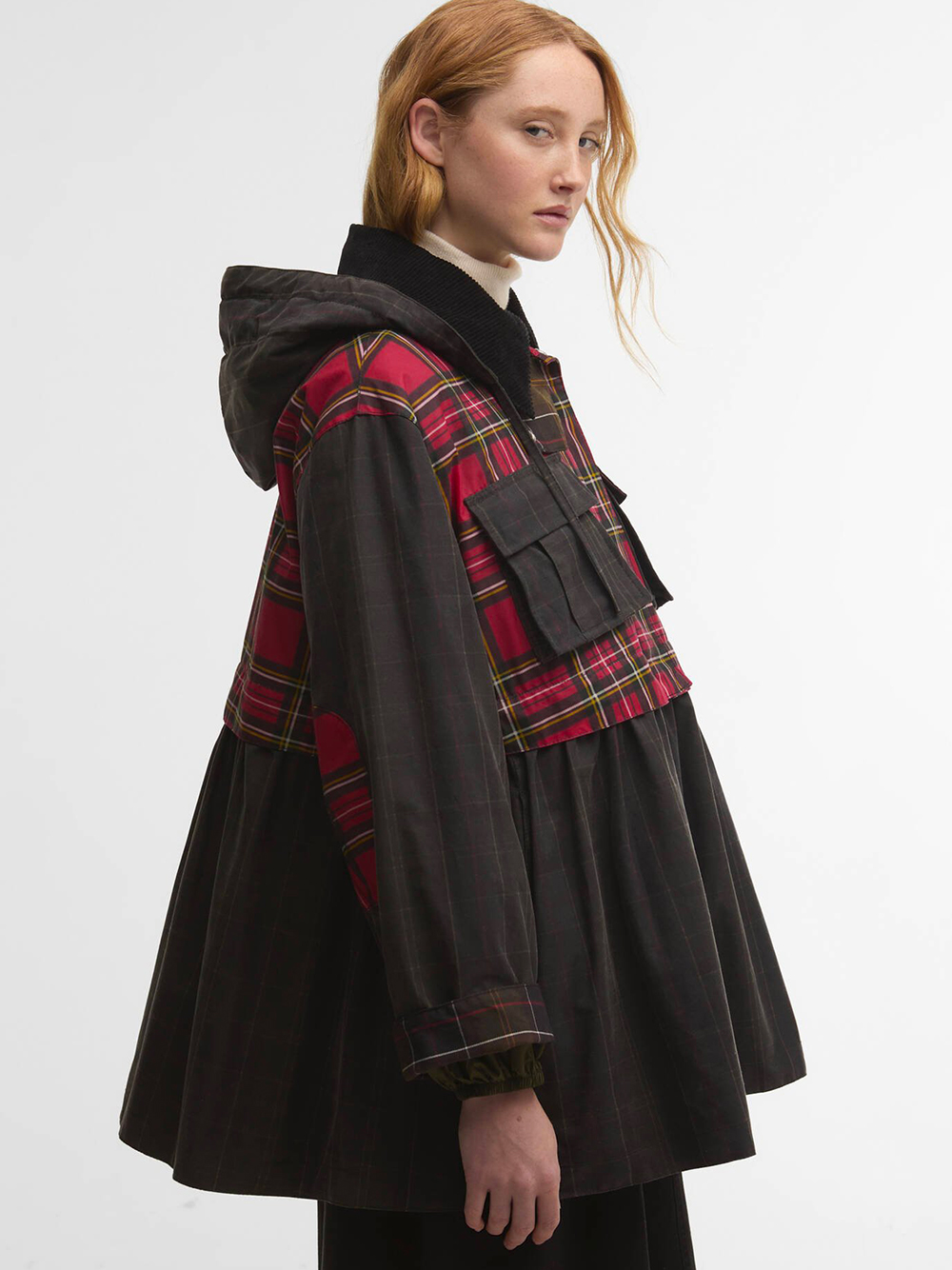 - BARBOUR X GANNI: WAXED JACKET WITH PEPLUS AND TARTAN DETAILS
