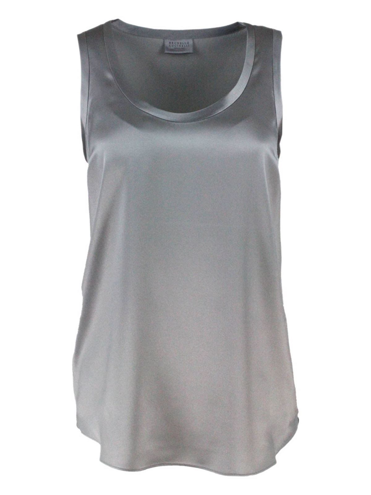 Silk satin top in grey M0C59E0600C7005