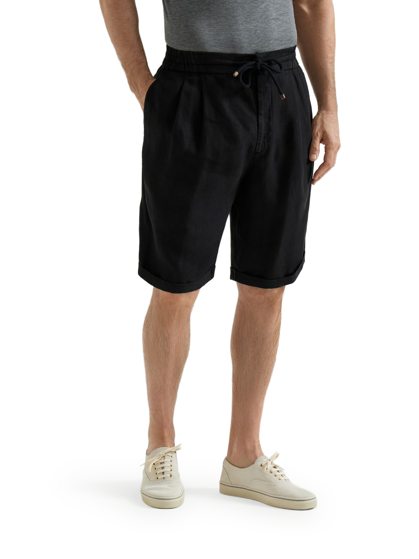 GARMENT DYED LINEN GABARDINE BERMUDA SHORTS WITH DRAWSTRING AND DARTS M243DU0020C101