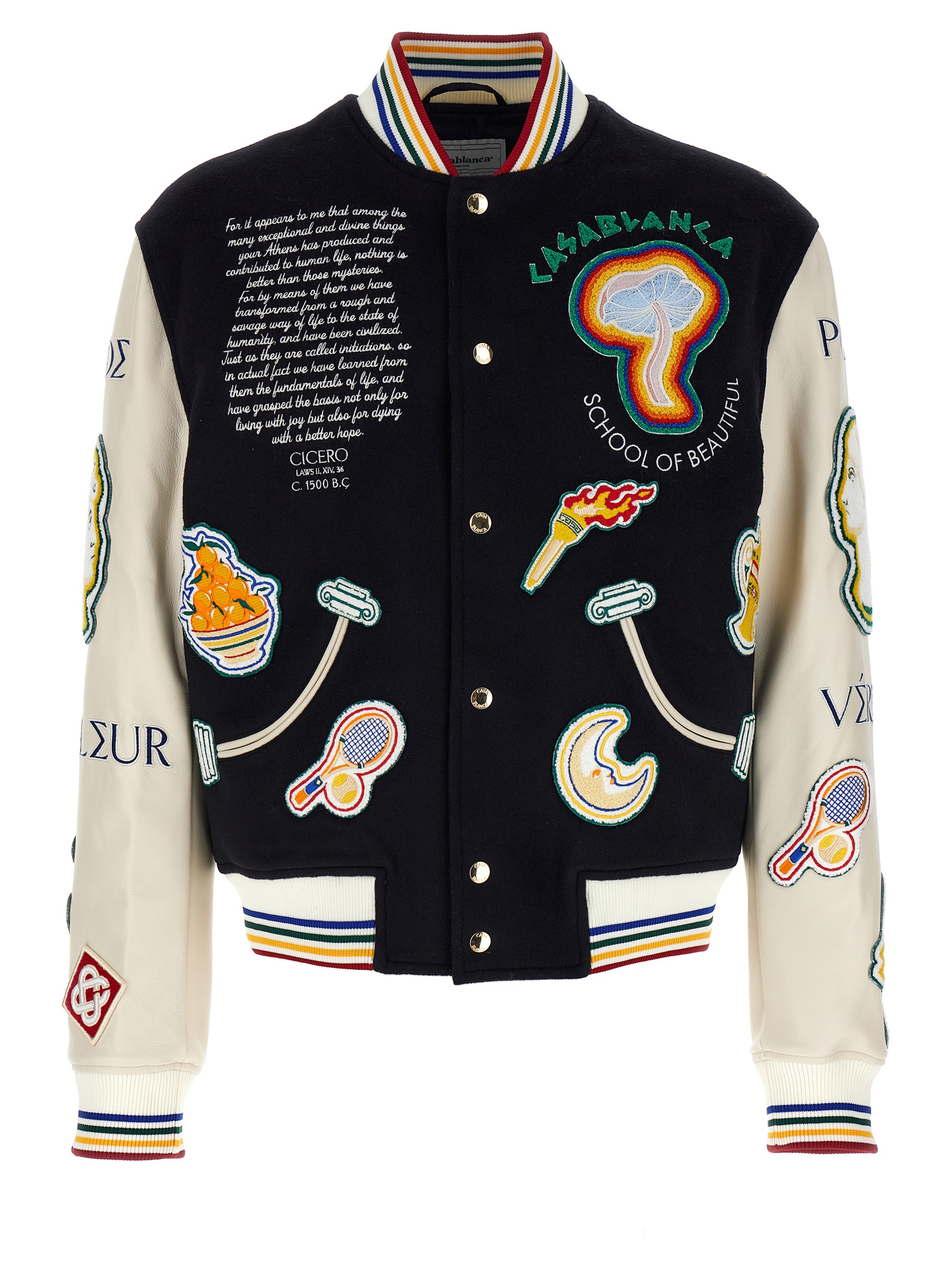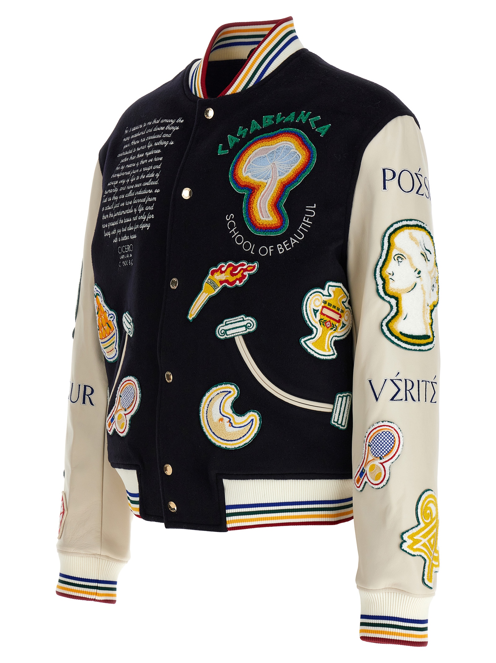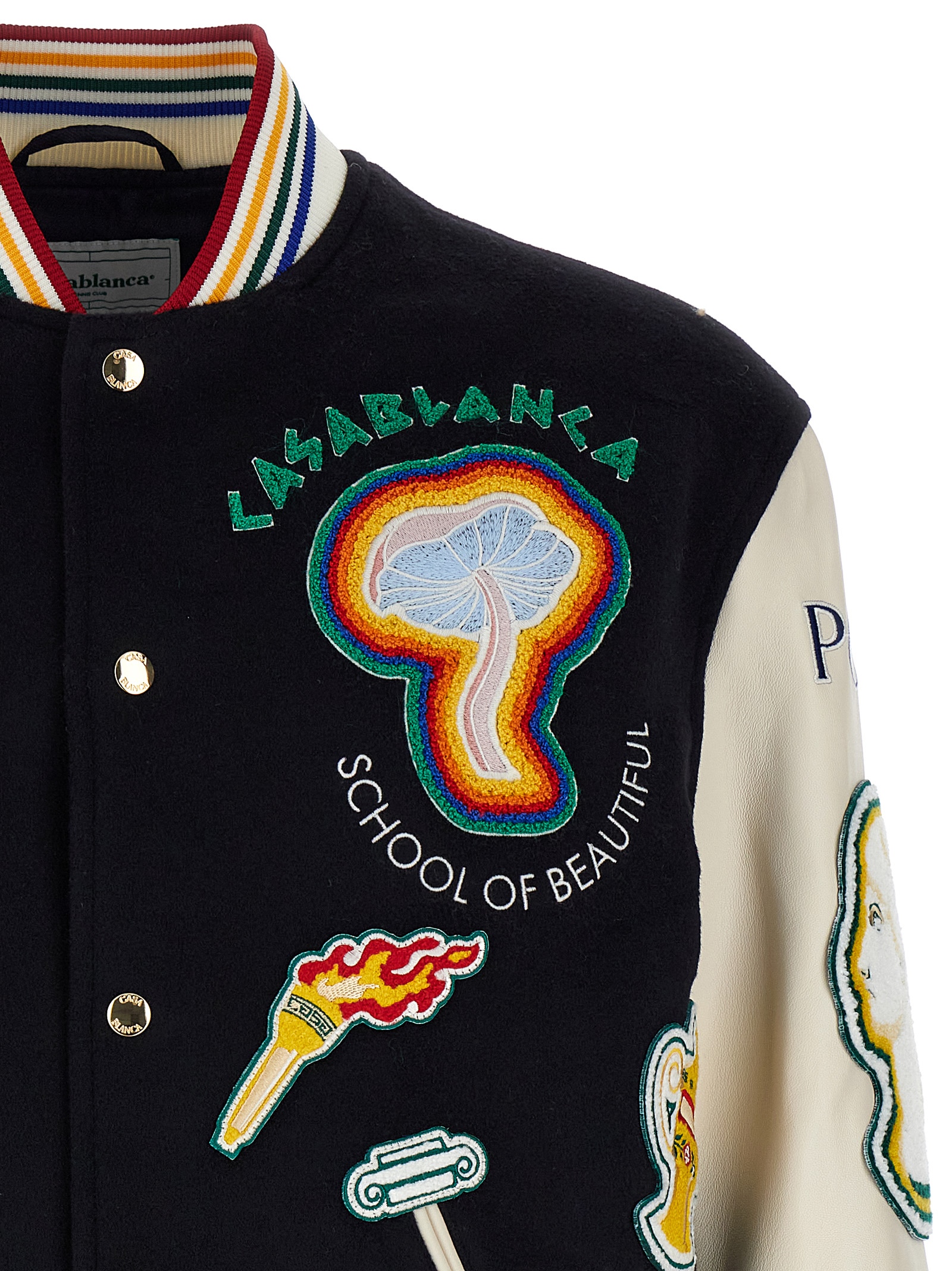 'Chenille Embroidered Patchwork' bomber jacket MF24OT13101NAVYOFFWHITE