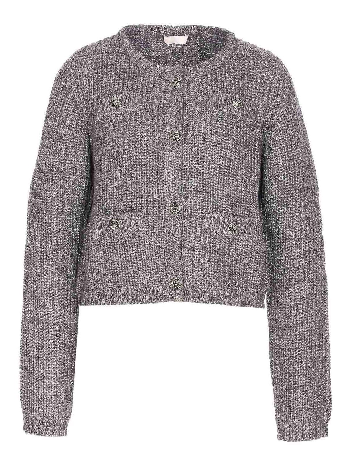 - Grey Knitted Cardigan Frontal Buttons Closure