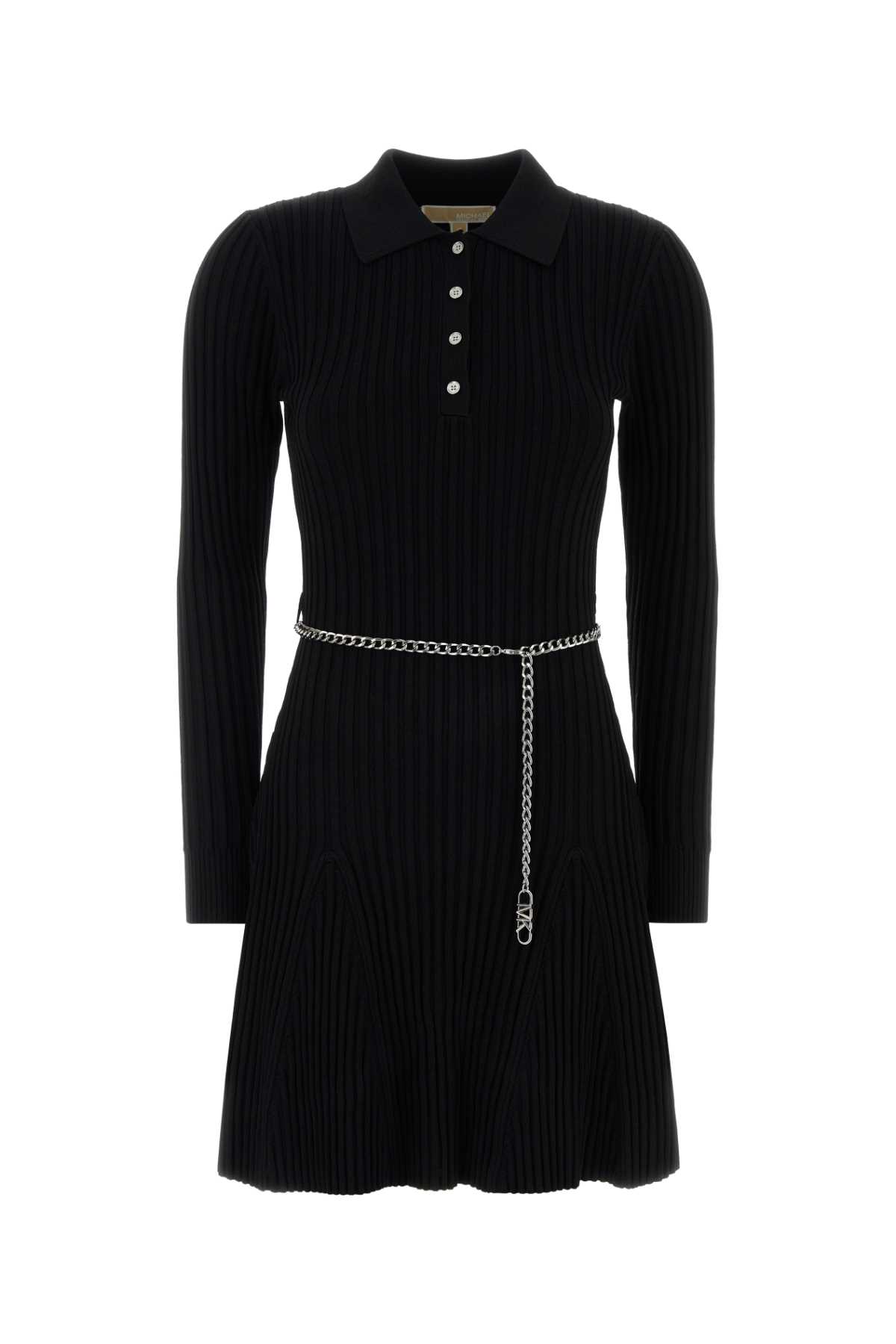 - Black stretch knit mini dress