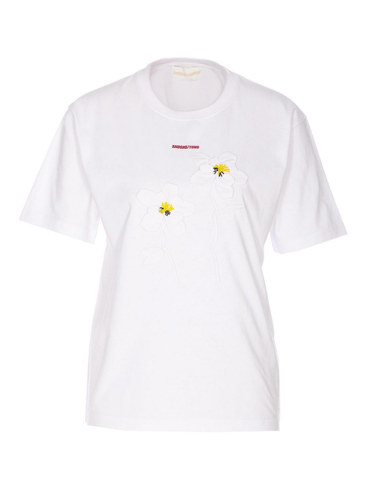 Hand Sewn Flower T-Shirt MWDETO33COT001WH100