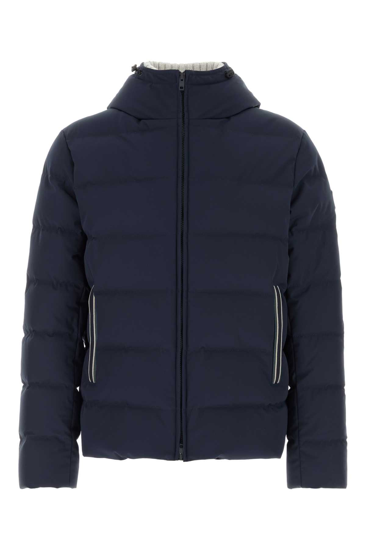 - Navy blue stretch nylon blend down jacket