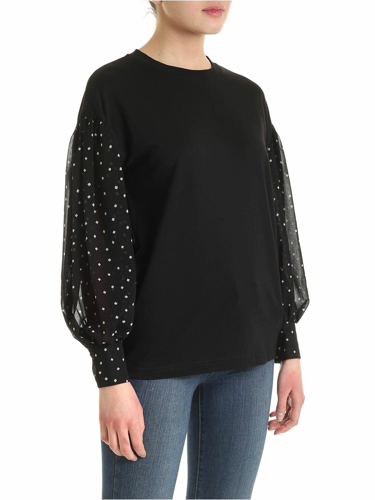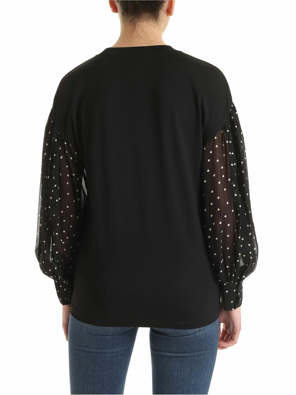 White check on the sleeves blouse in black P0AH0EQKBFJ