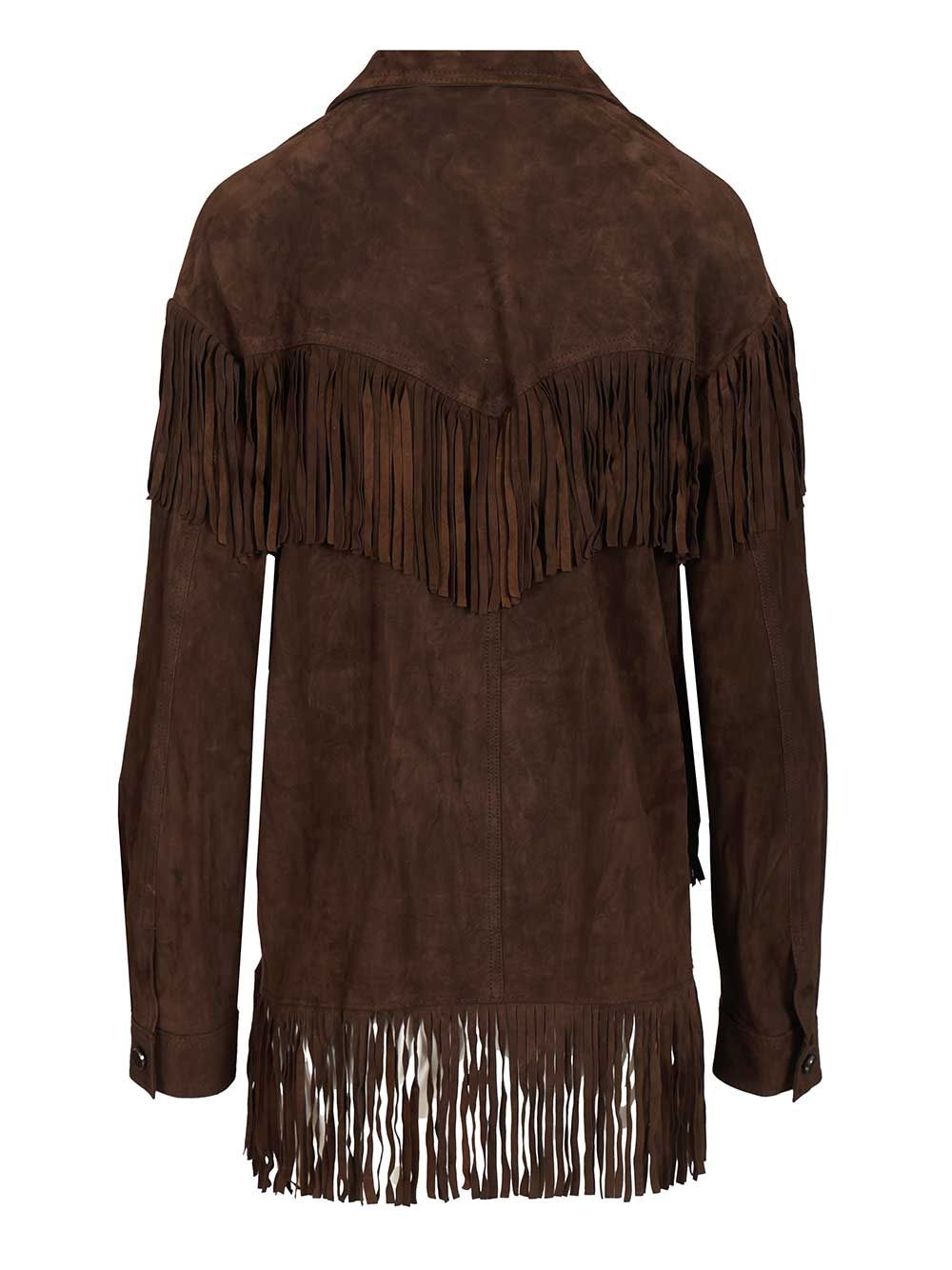 - Suede fringed overshirt