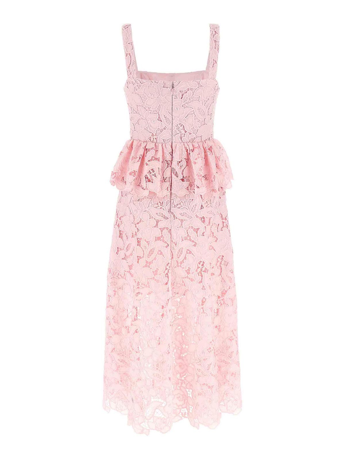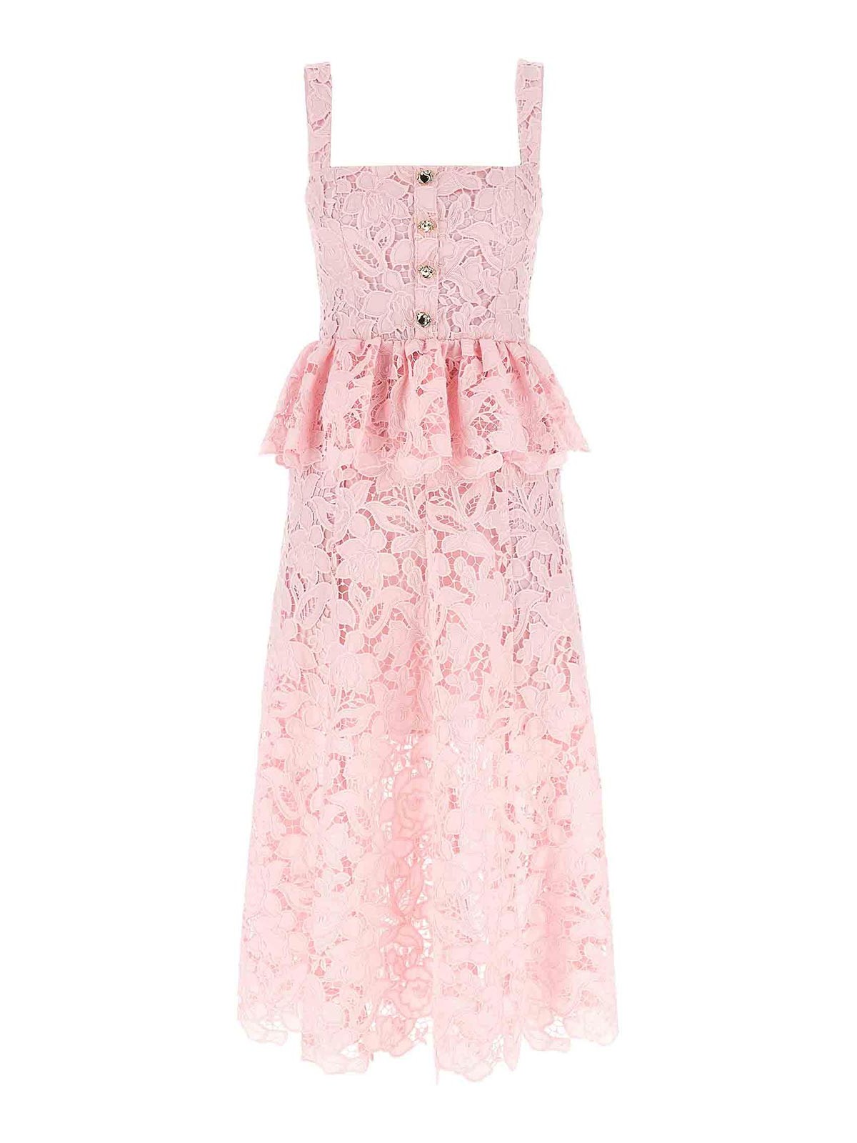 - Pink Lace Peplum Midi Dress