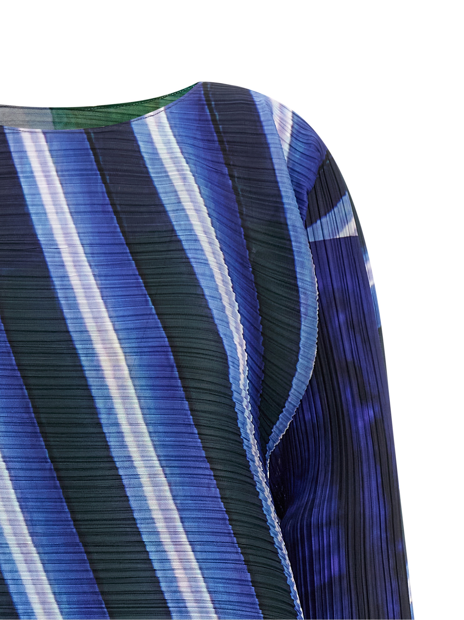 1994年に単独ブランドとしてスタートしたPLEATS PLEASE ISSEY MIYAKE(プリーツ プリーズ イッセイ ミヤケ)は、ISSEY MIYAKEウィメンズコレクションで初めて発表された「プリーツ」を基に展開しました。特筆すべきは「製品プリーツ」と呼ばれる技法で、1本の糸から素材を開発し、縫製後にプリーツをかけることで、軽く、着やすく、水洗い可能な機能的な衣服を実現しました。このアプローチにより、身体に馴染むシルエットと動きに適応する衣服が生み出されました。イッセイ ミヤケの製品プリーツは、現代の着る喜びと自由に応え、独自の創造力を魅せています。