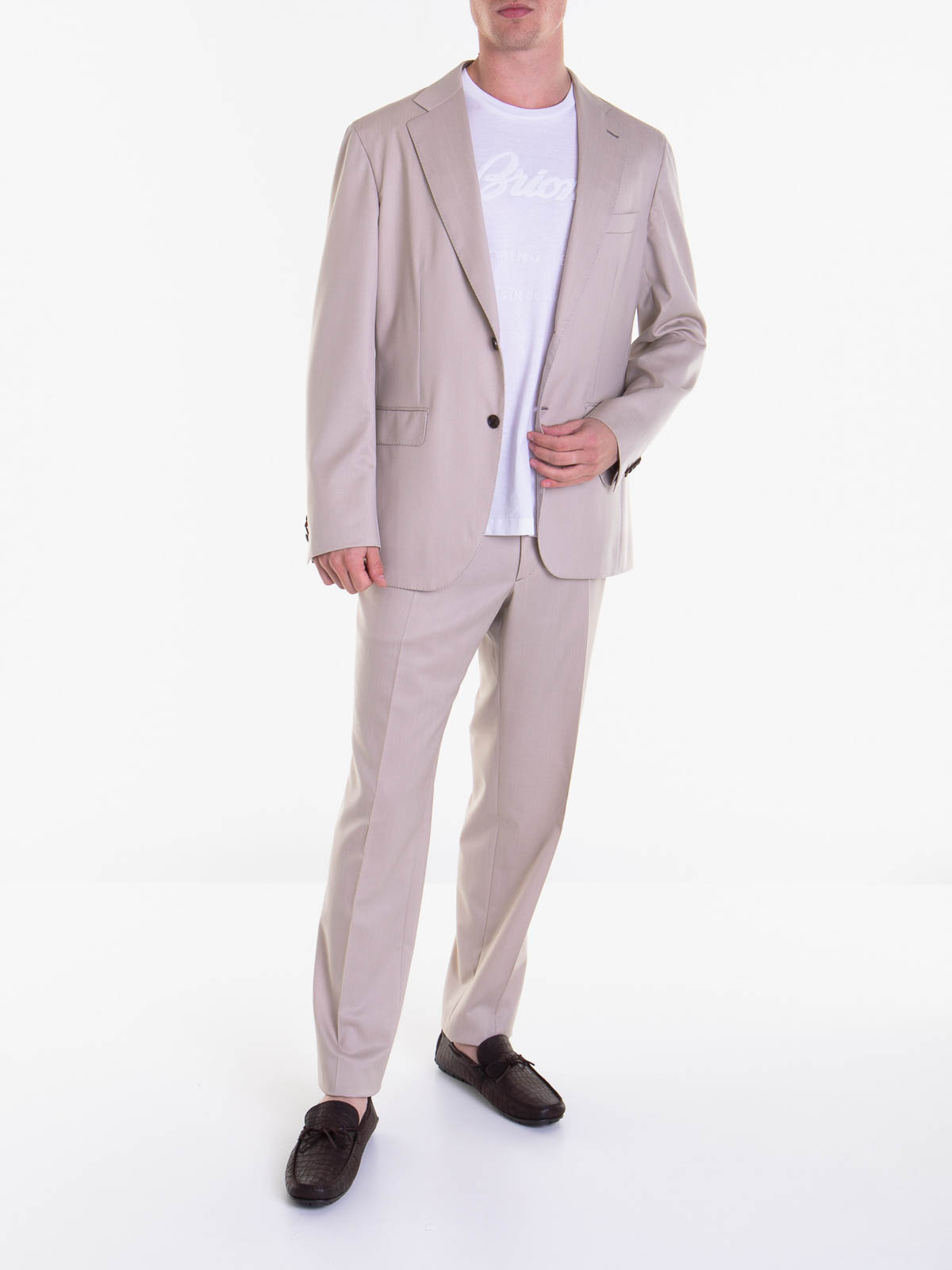 Brioni(ブリオーニ)は1945年、イタリア、ローマにてナザレノ・フォンティコリとガエタノ・サヴィーニが紳士服のブランド「アトリエ・ブリオーニ」を創業しました。ブリオーニのスーツは、最高級の素材を使い、職人のハンドワークにこだわったもので、イタリアのエレガンスを追求。イギリスなどの伝統的なスーツに代表される、重厚な素材を使用した、重いスーツに反して、軽い素材を使用した軽やかなスーツスタイルを提案しています。