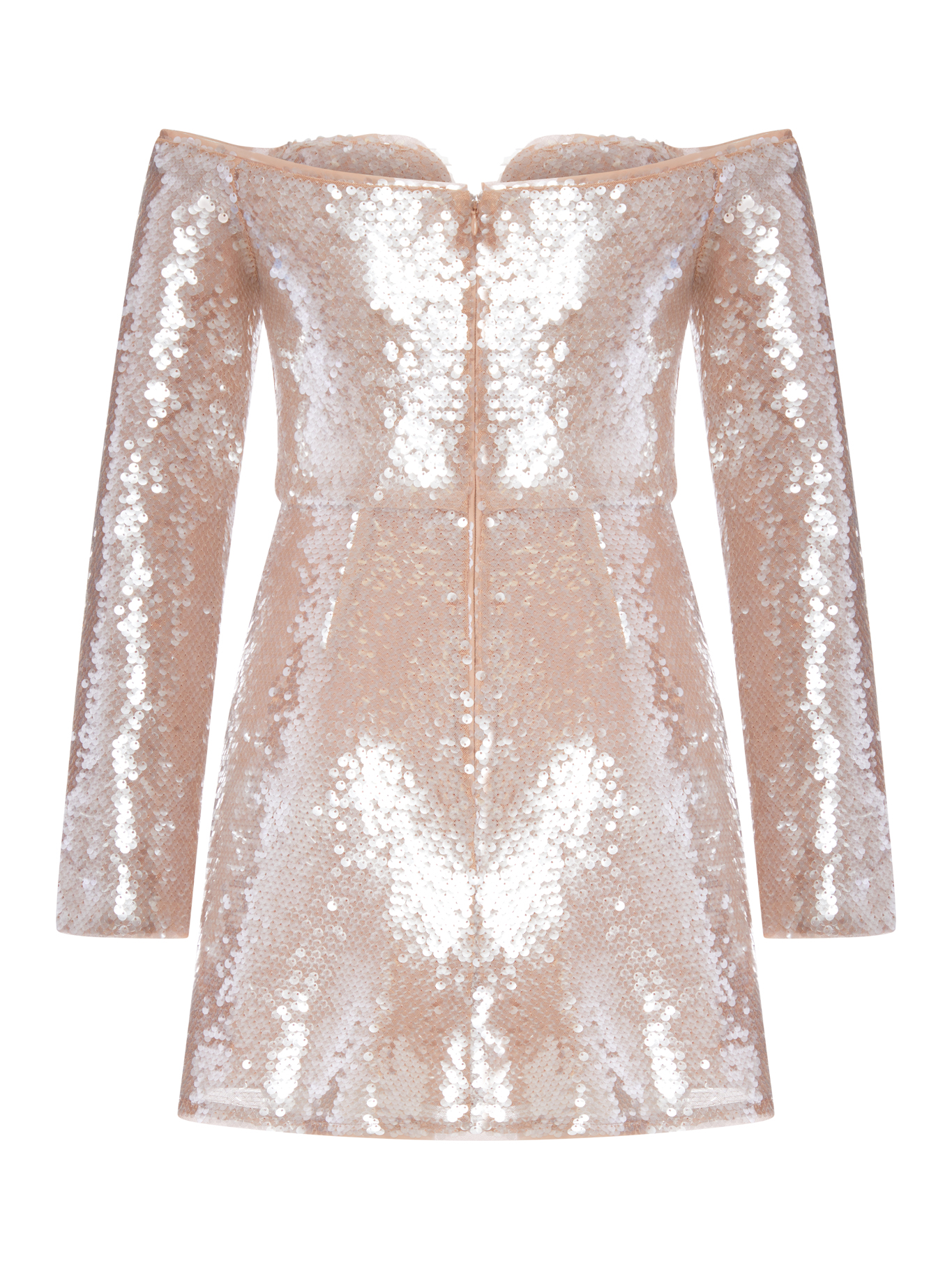 OFF-SHOULDER SEQUIN MINI DRESS RS25109SBGBEIGE