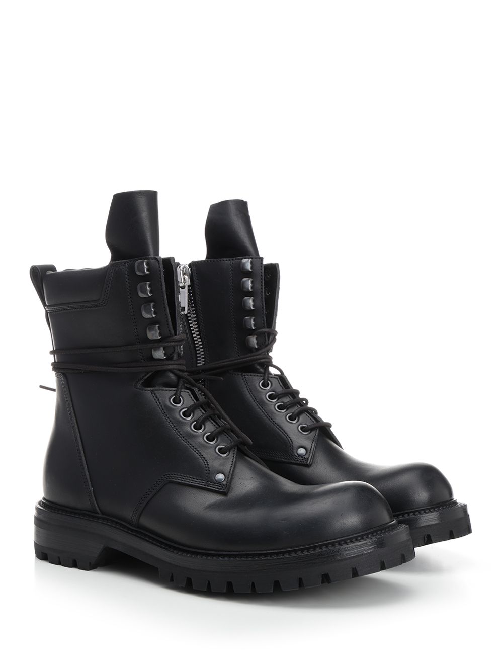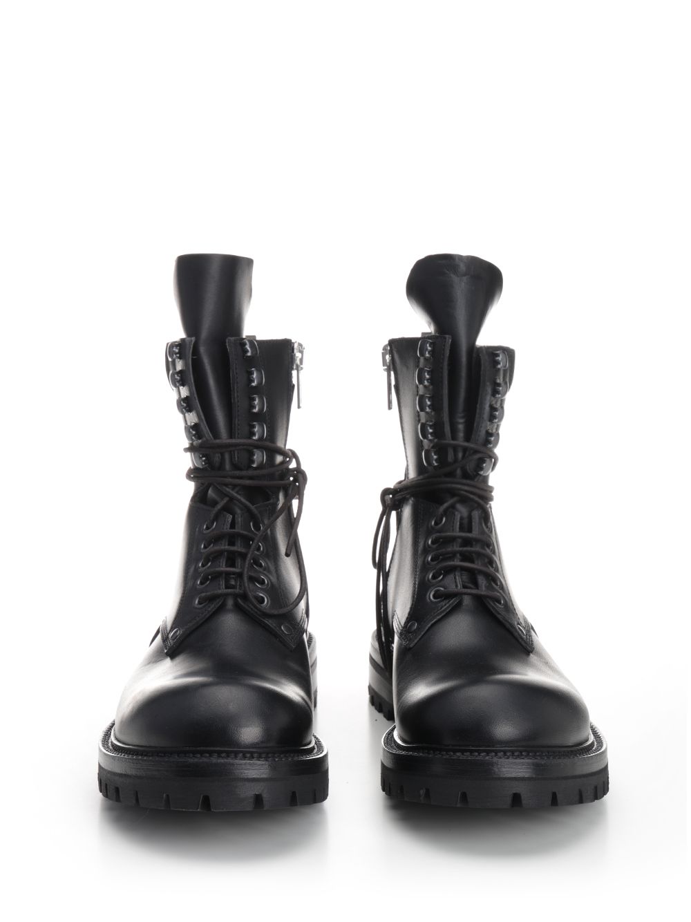 Black leather army boots RU01E5869LGE09