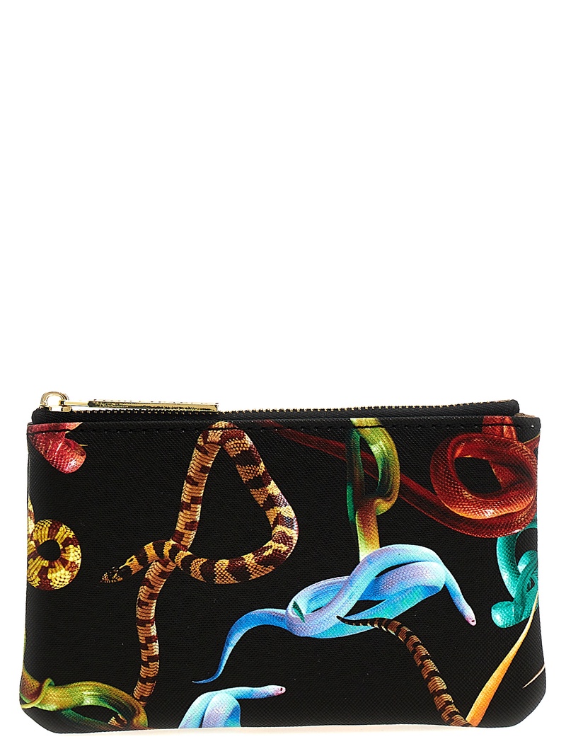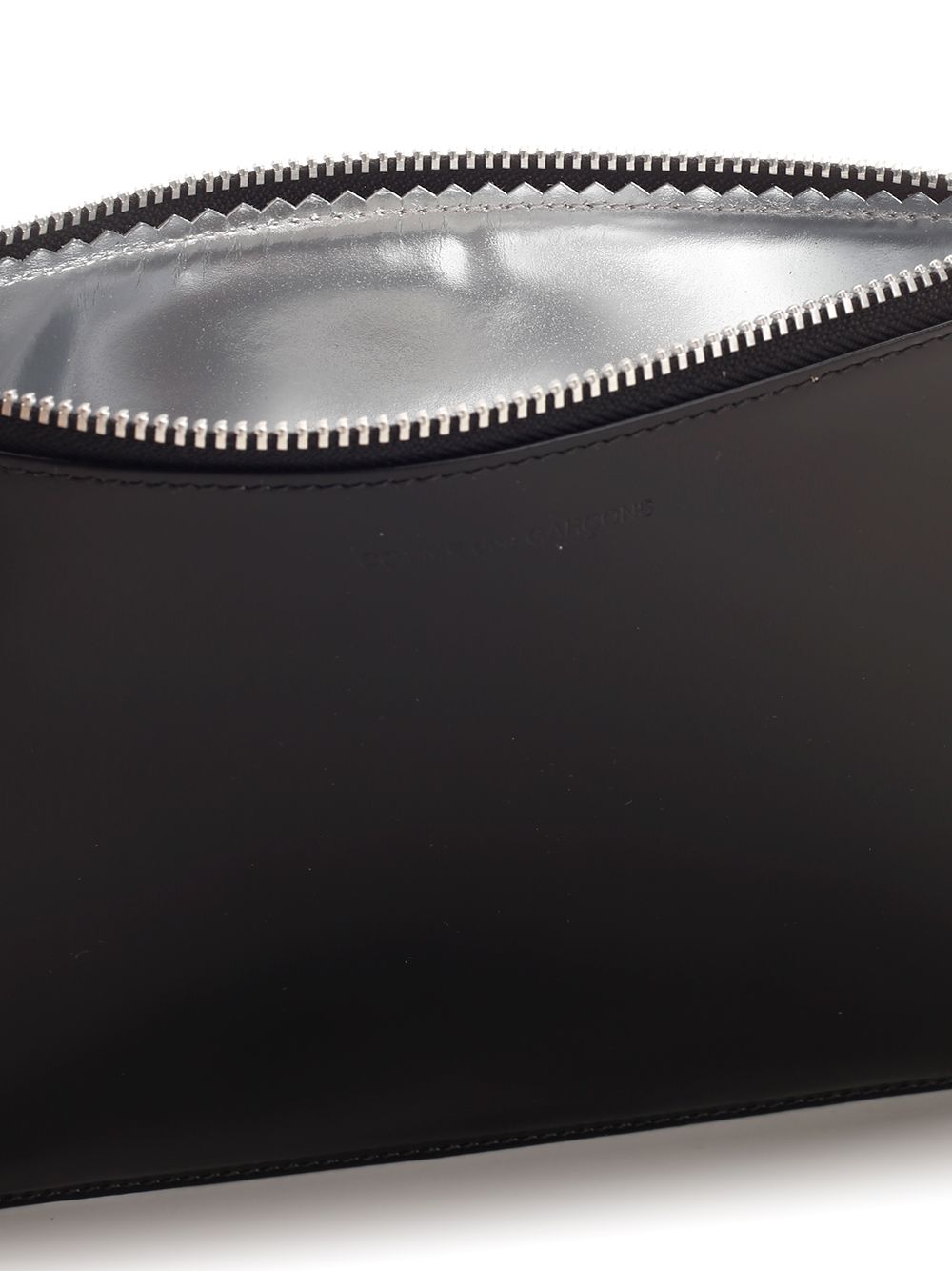 - Shiny leather pouch with silver interior