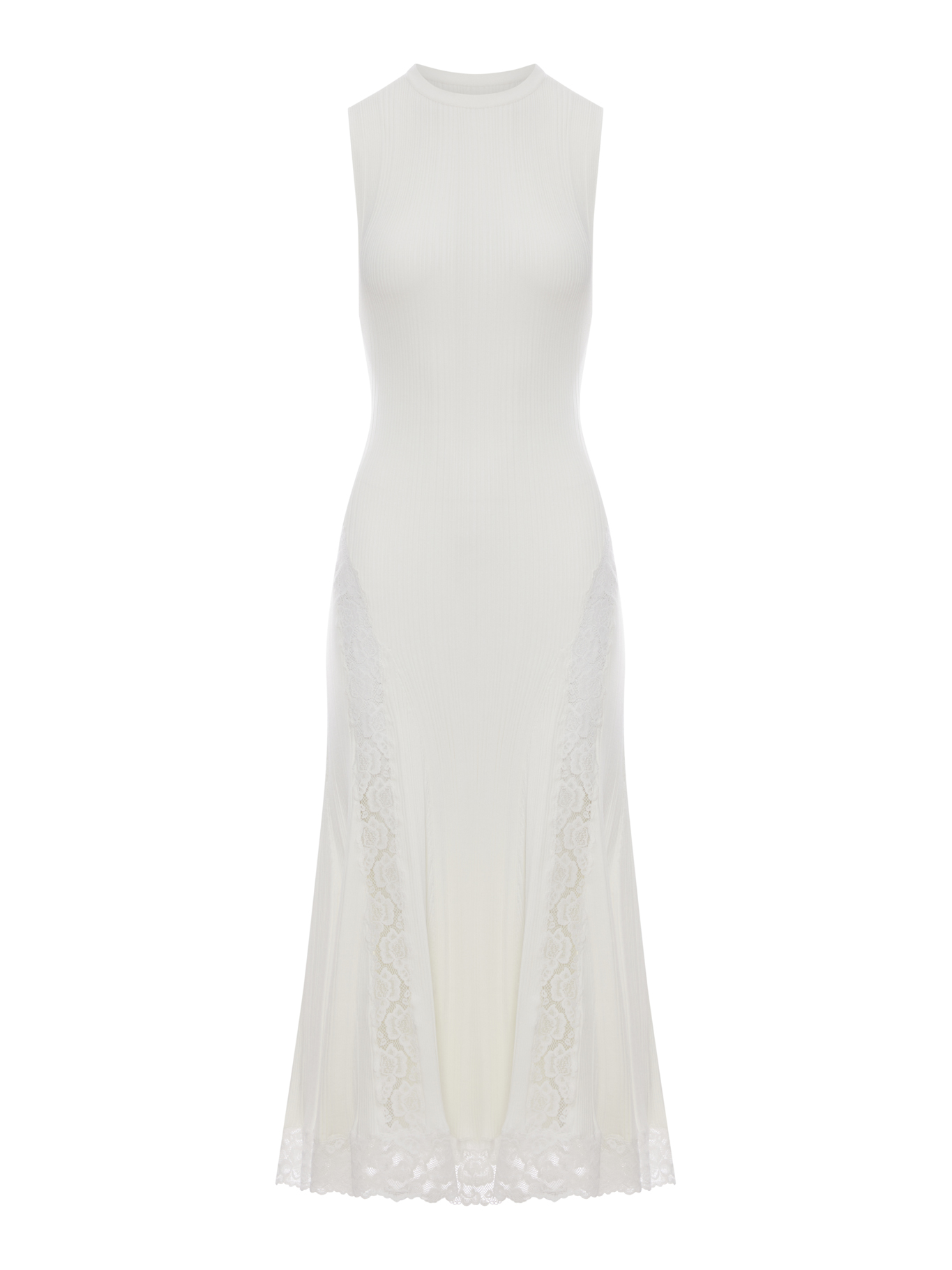 WHITE KNITTED MIDI DRESS WITH LACE INSERTS SS26089MAWWHITE