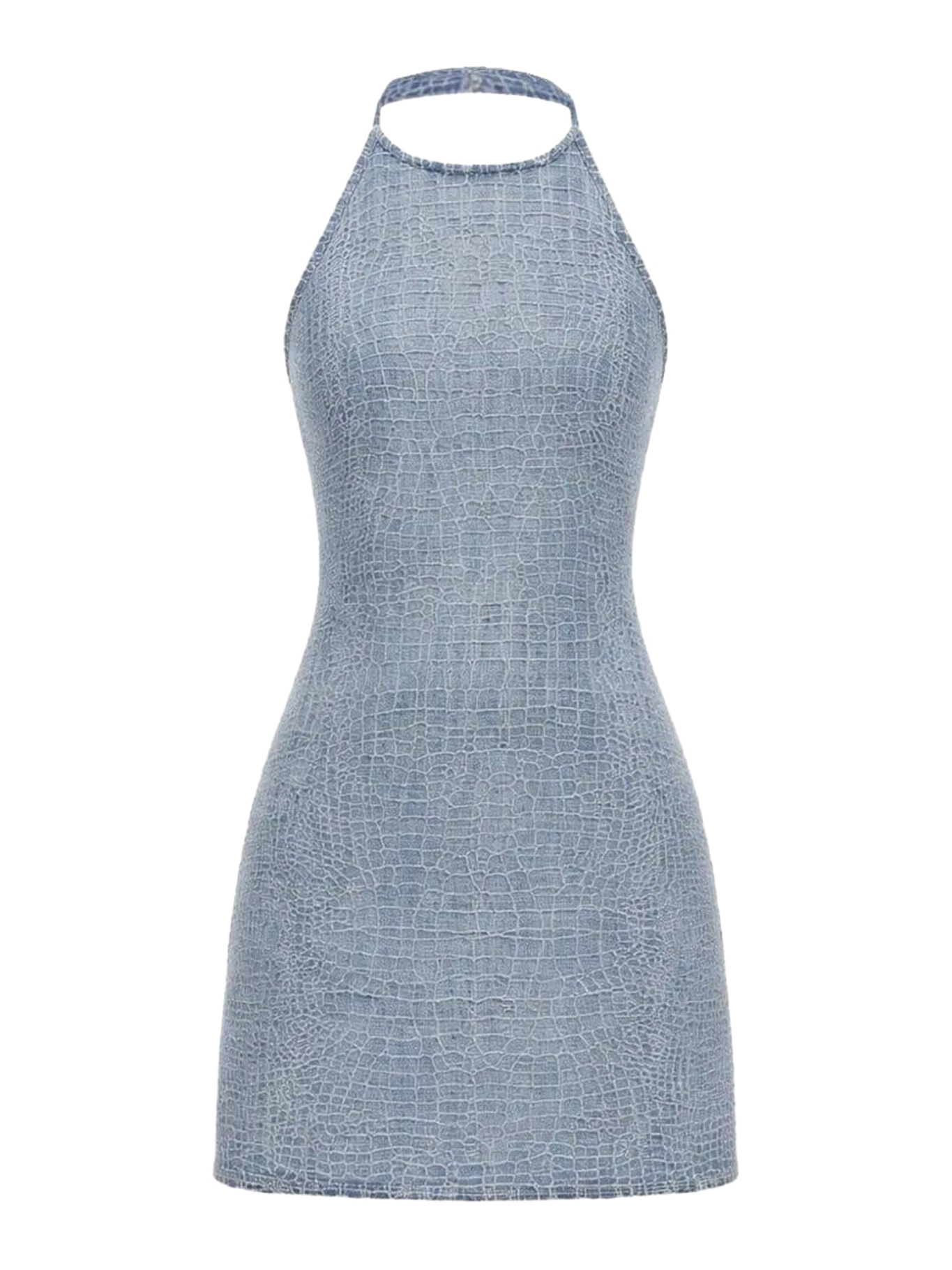 CROCODILE-EFFECT DENIM MINI DRESS WITH RHINESTONE SS26804SBLBLUE