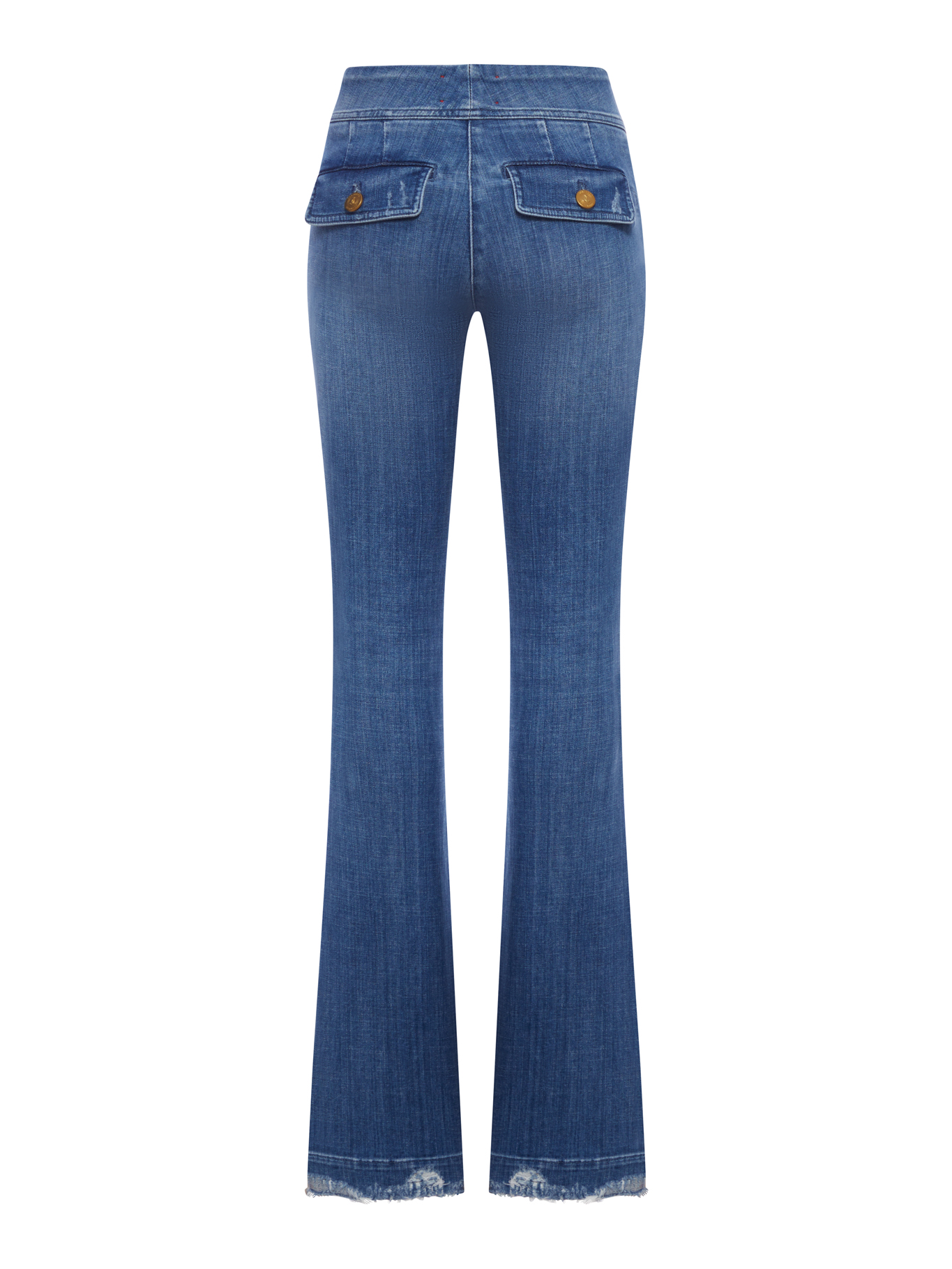 - ANAIS FLARE JEANS WITH GOLD BUTTONS AND FRINGED HEM