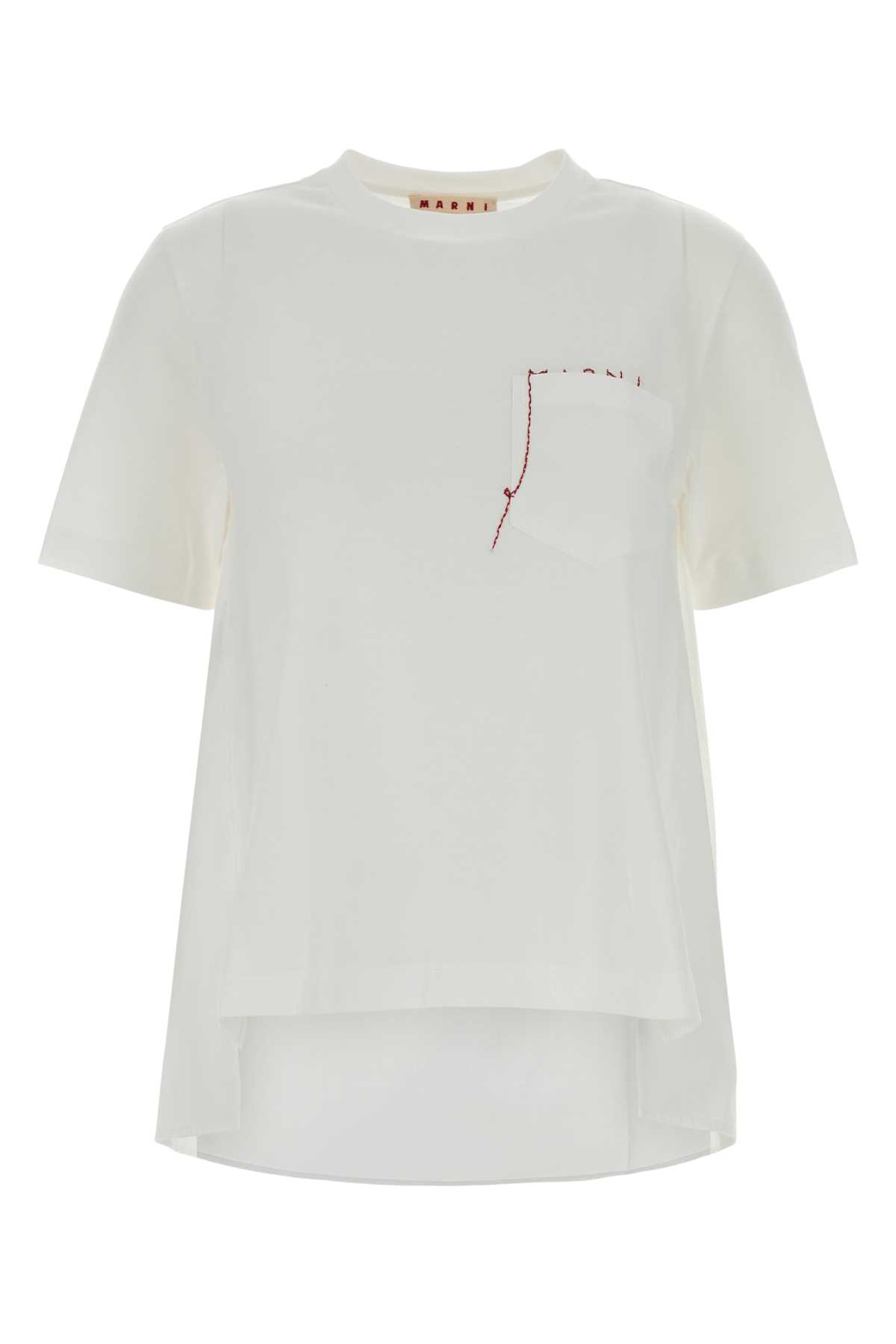- White jersey and poplin t-shirt
