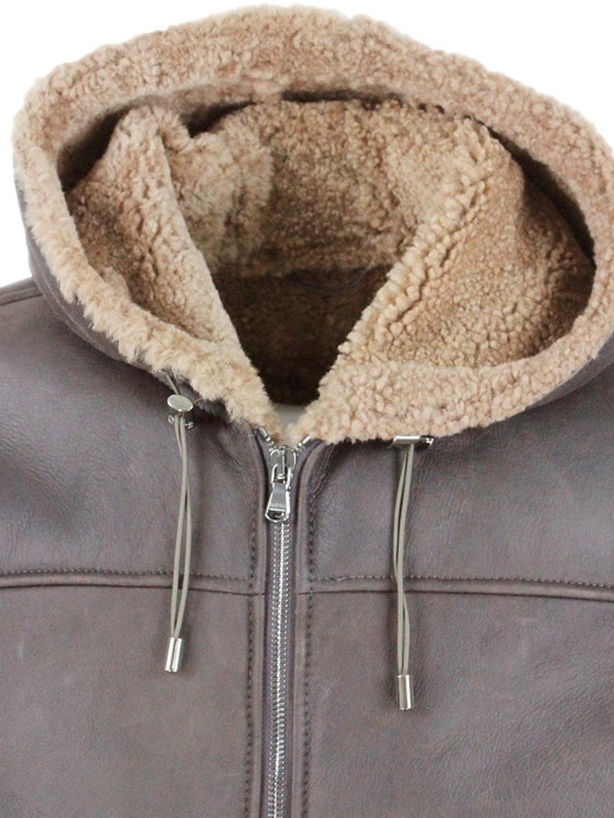 - Shearling hooded jacket with ribbed cuffs
