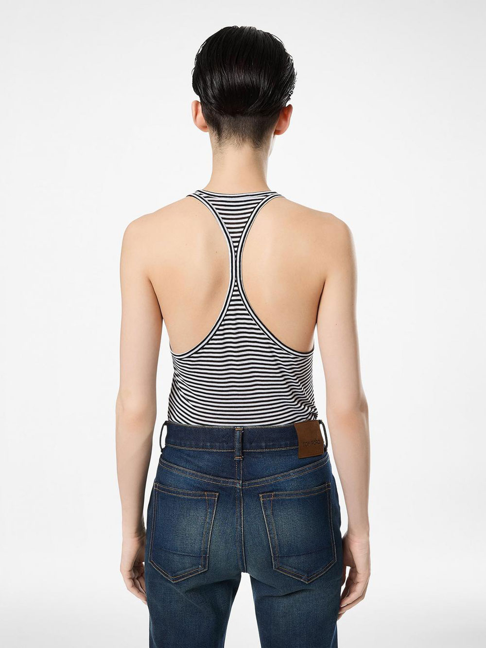 - STRIPED VISCOSE TANK TOP WITH TONAL TF EMBROIDERED LOGO