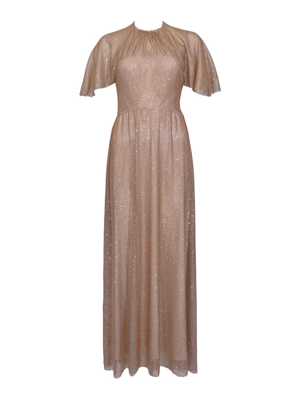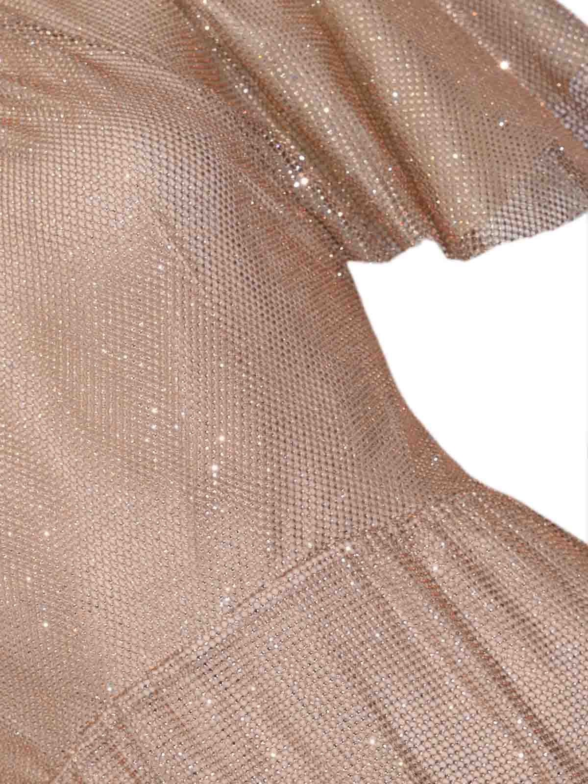 - Long mesh dress with pink micro rhinestones