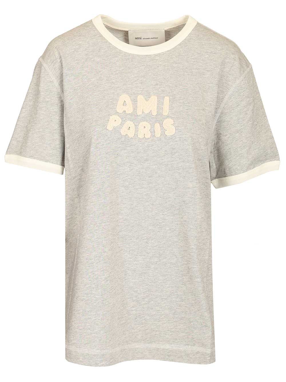 - SHORT SLEEVES CLASSIC FIT TEESHIRT WITH AMI PARIS KNITTED PATCH