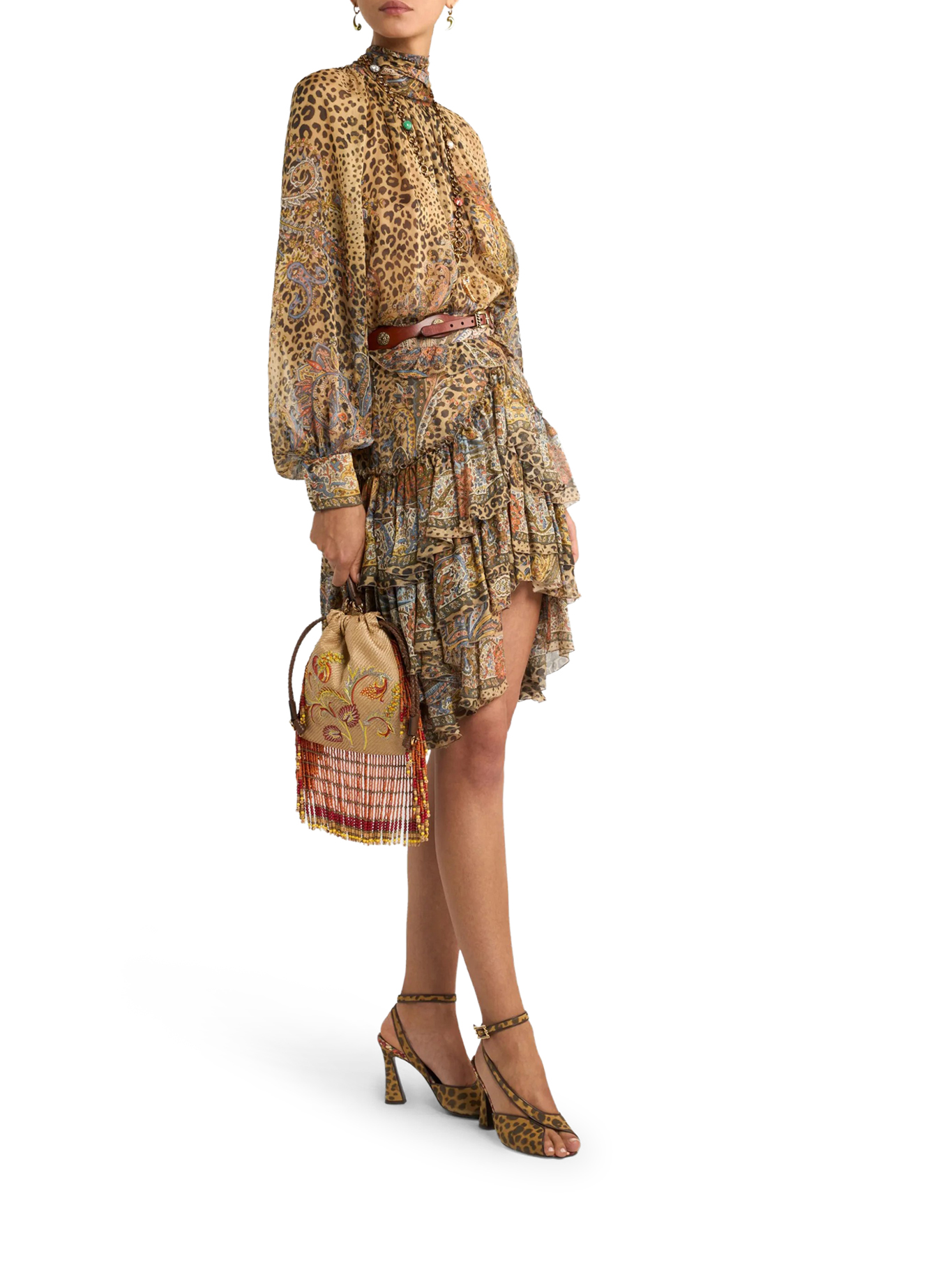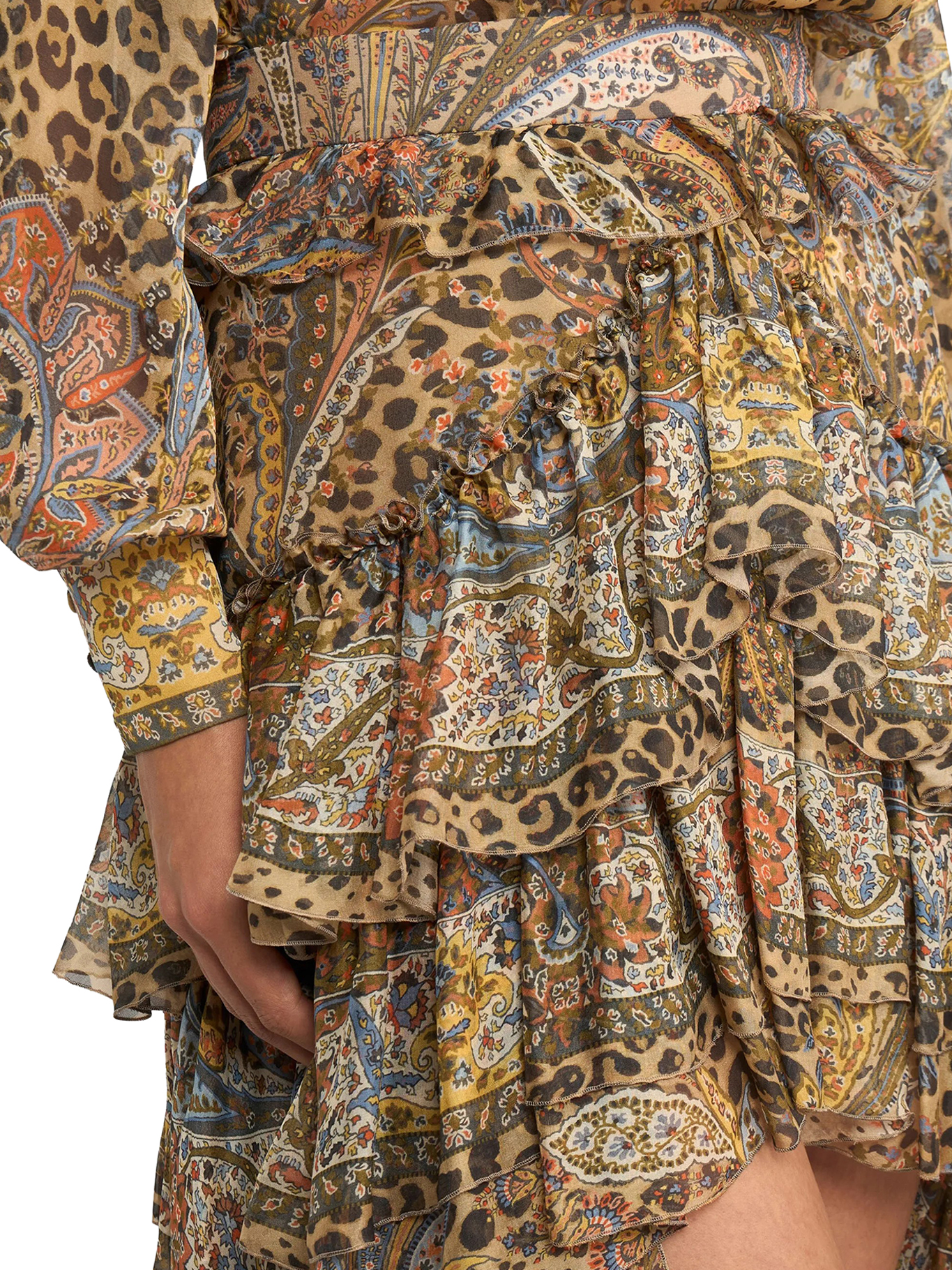 PAISLEY AND ANIMAL PRINT SILK RUFFLED MINI SKIRT WRFA018599SP1K9X0826X0826