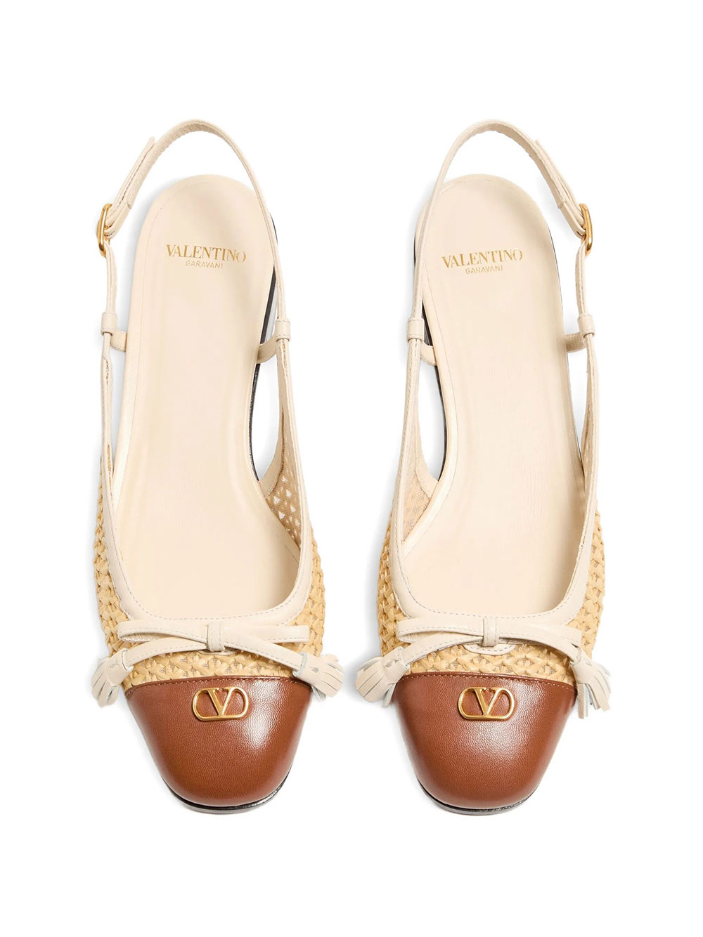 - VALET DU ROI LEATHER AND RAFFIA SLINGBACK BALLERINAS