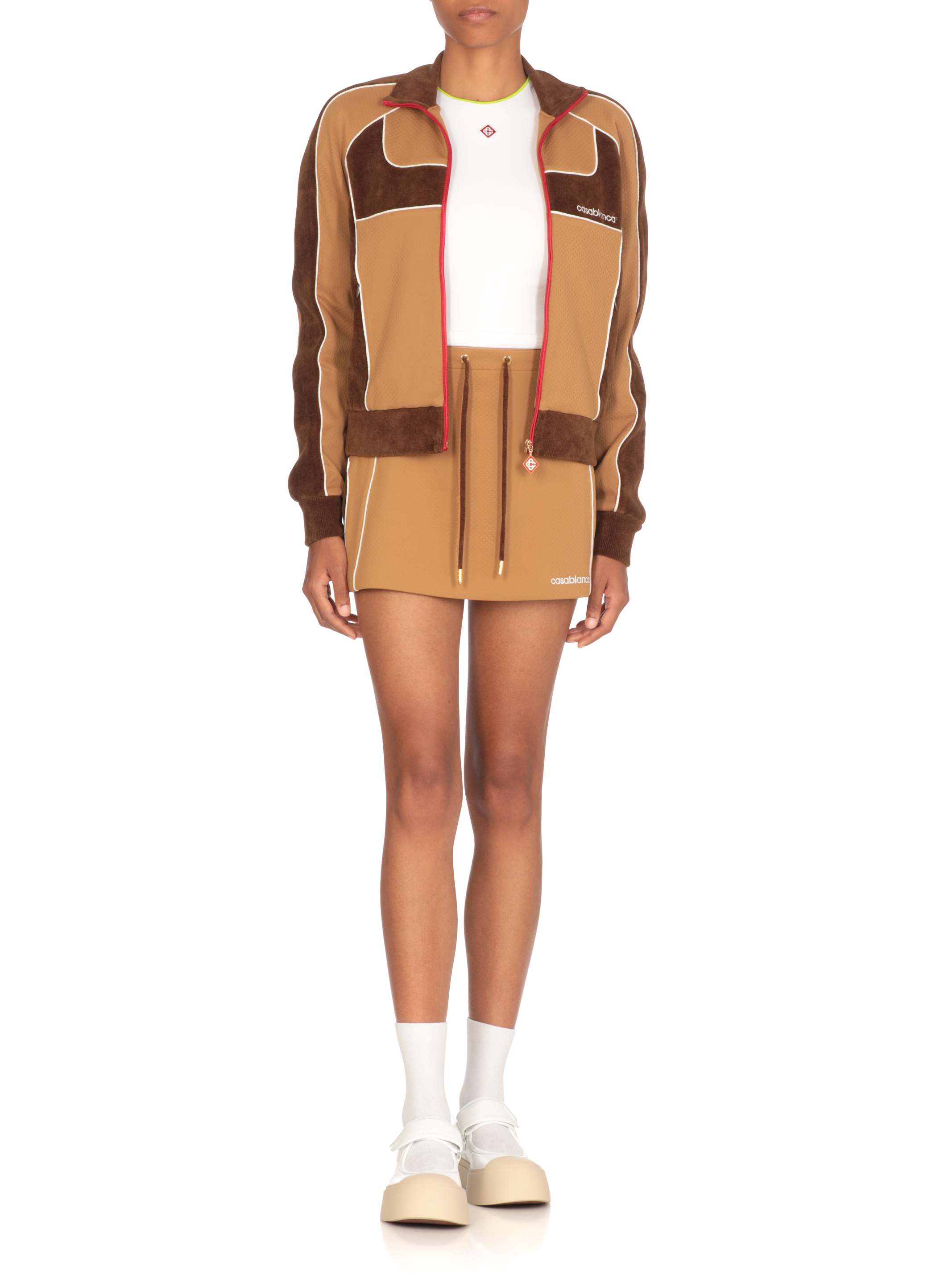 Casablanca(カサブランカ)は、モロッコの都市カサブランカ出身のCharaf Tajer(シャラフ・タジェル)が2018年に設立したファッションブランドです。パリでデザインし、カサブランカで生産しています。カサブランカのウェアは、テニスウエアにインスパイアされた象徴的なデザインに、ナポリのテーラリング技法を用いています。時代を超越したエレガントなドレススタイルであり、スポーツウエアの要素に加え、高級ホテルのバスローブような快適さを合わせ持ち、ラグジュアリーなスタイルとリラックス感を両立させています。