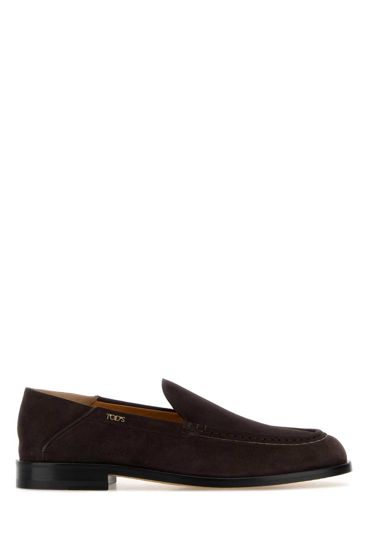 - Dark brown suede loafers
